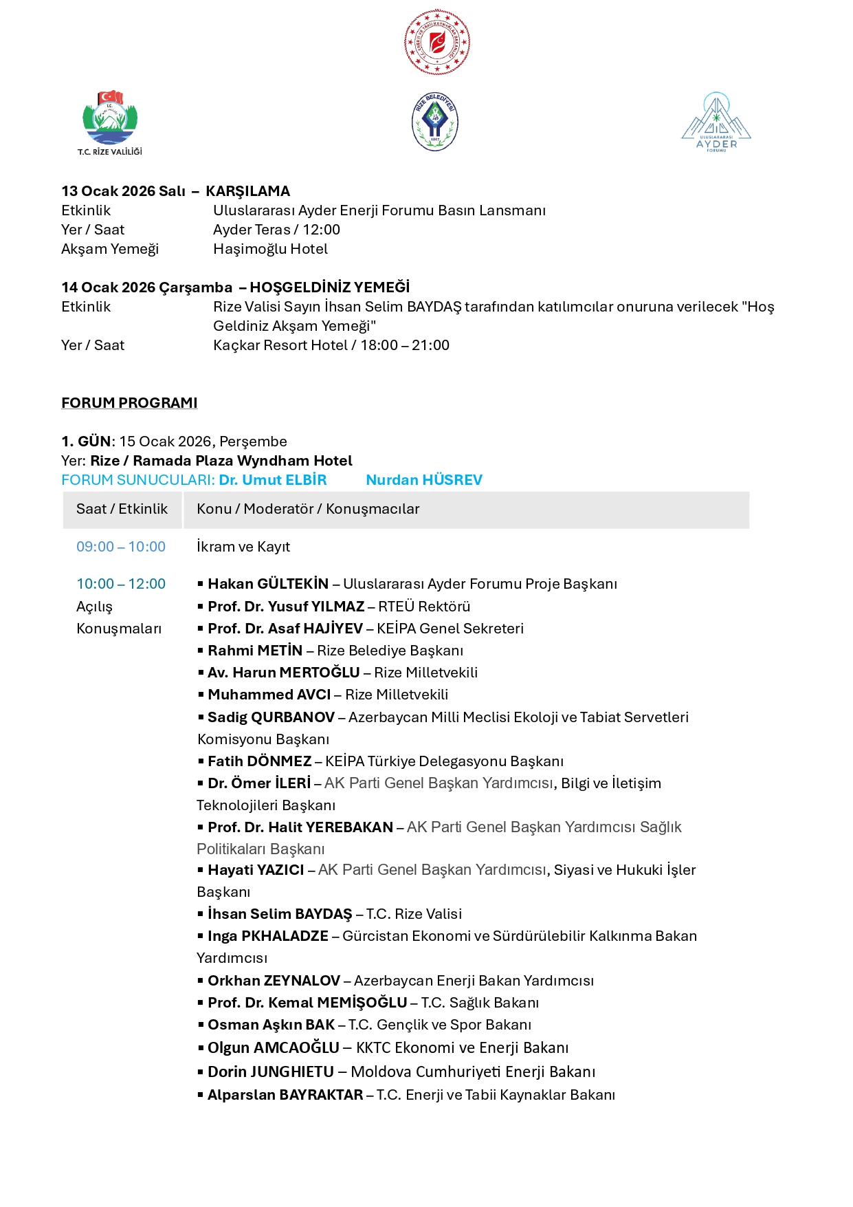 Ayder Forum’un, bölgesel iş birliği, enerji politikaları ve diplomatik ilişkilerde önemli bir platform olması bekleniyor.