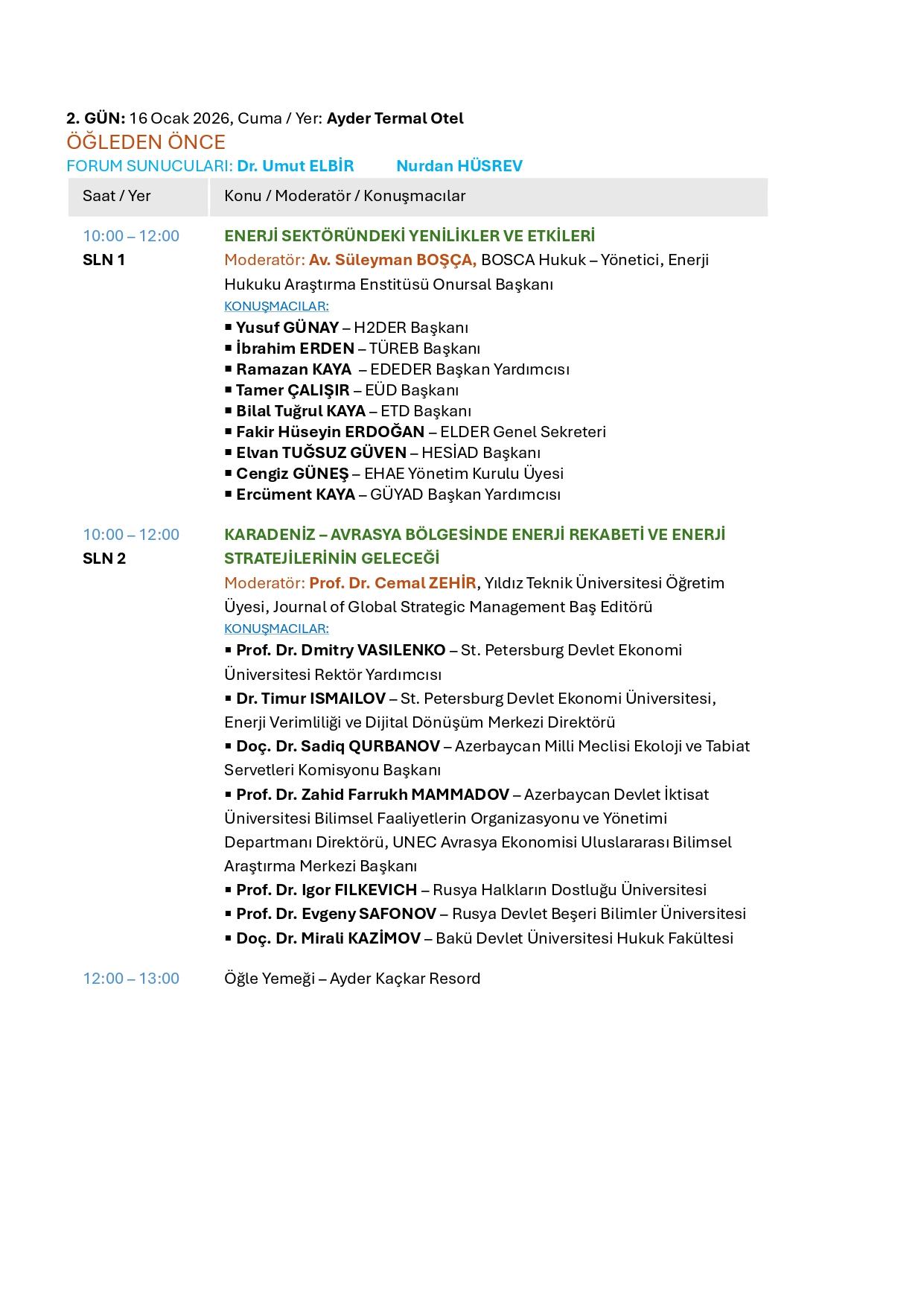 “Sayın Cumhurbaşkanımızın vizyonuyla Ayder’in, Davos gibi dünya gündeminin konuşulduğu bir merkez olması hedefleniyor. Geçen yılki forumda lojistik gündemini ele almıştık, bu yıl ise enerji odağında ilerliyoruz. Enerji Bakanımızın himayelerinde, çok sayıda uluslararası temsilcinin katılımıyla forumu gerçekleştireceğiz.”