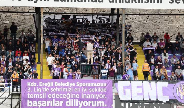 Kdz.Ereğli Belediyespor taraftarı 90 dakika boyunca takımına destek vererek ateşledi, ancak maçtan gol sesi çıkmadı.