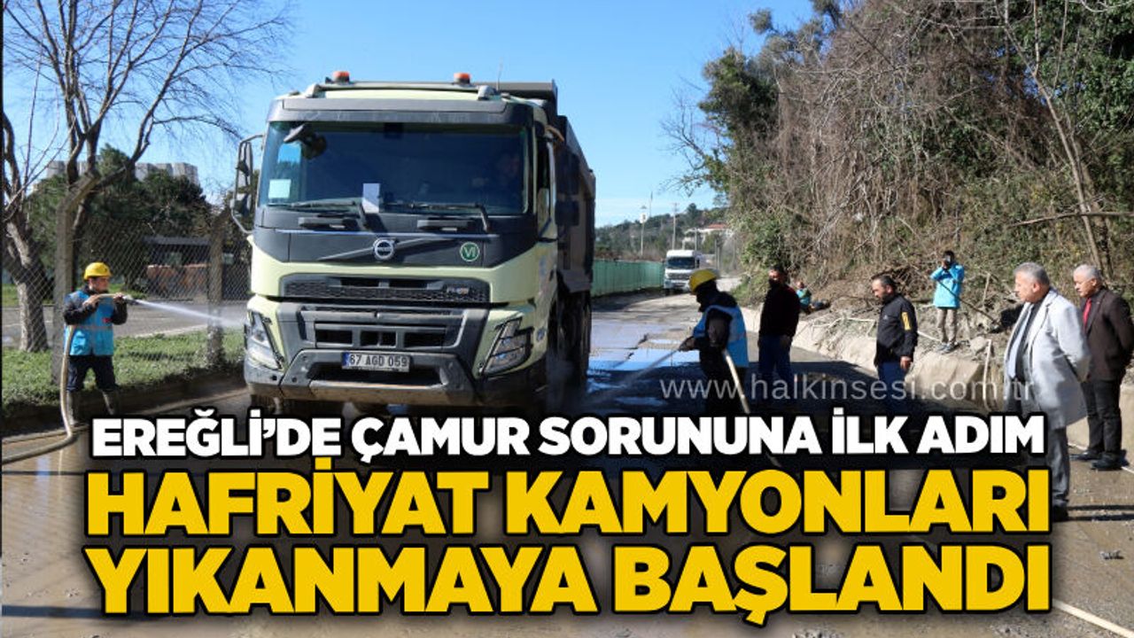 Kdz. Ereğli Belediyesi, limandaki dolgu sahasından çamur içinde çıkan kamyonların temizlenmesi için şehir şebekesinden su hattı bağladı. Böylece kamyonlar, şehir trafiğine çıkmadan önce firma görevlileri tarafından yıkanmaya başlandı.