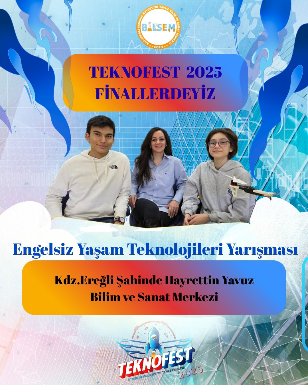 Kdz. Ereğli Şahinde Hayrettin Yavuz Bilim ve Sanat Merkezi, danışman öğretmen Müzeyyen Merve BAKANGÖZ ve takım üyeleri Ela DEMİRALAY ile Batuhan TEKTAŞ’ın yer aldığı Tecnoevangers Takımı, geliştirdikleri Silent Guard projesiyle Engelsiz Yaşam Teknolojileri kategorisinde yarışacak. Teknolojiyi sosyal faydayla buluşturan proje, herkes için daha güvenli bir yaşam alanı oluşturmayı hedefliyor.