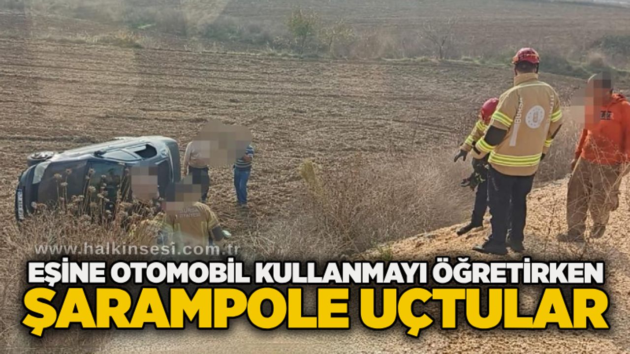 Emrullah T.(35) eşi Ayşe T.'ye (30) araç kullanmayı öğretmek için 57 ABA 885 plakalı otomobili verdi. Kadın yönetimindeki otomobil, sürücüsünün kontrolünden çıkarak şarampole yuvarlandı. Taklalar atan otomobilin sürücüsü ile yanındaki eşi Emrullah T. Yaralandı. Yaralılar kaza yerine sevk edilen ambulansla İnegöl Devlet Hastanesine kaldırıldı.