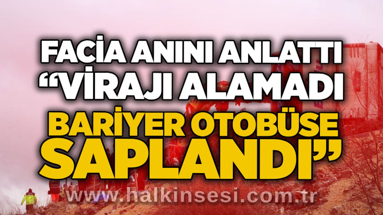 Otobüste bulunan yolculardan Ahmet Kodaz, “Yolda yoğun sis vardı. Şoför çok hızlı geliyordu. Viraja girince alamadı. Önce yan yatıp süründük, sonra bariyer otobüsün içine saplandı. Hepimiz aşağıya uçtuk. Otobüs neredeyse tamamen doluydu” diyerek yaşananları anlattı.