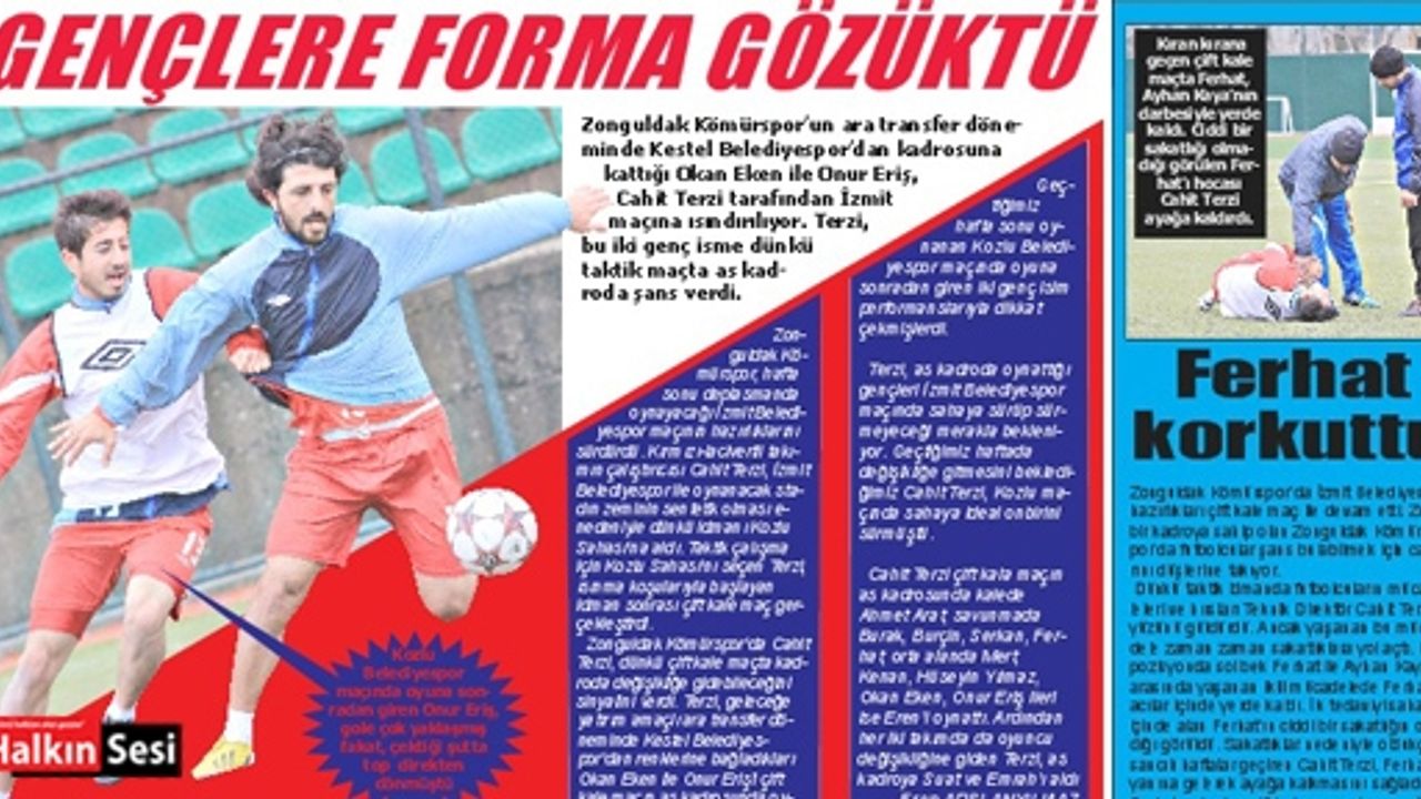 Zonguldak Kömürspor’da Cahit Terzi, dünkü çift kale maçta kadroda değişikliğe gidebileceğini sinyalini verdi. Terzi, geleceğe yatırım amaçlı ara transfer döneminde Kestel Belediyespor’dan renklerine bağladıkları Okan Eken ile Onur Eriş’i çift kale maçın as kadrosunda oynattı. Geçtiğimiz hafta sonu oynanan Kozlu Belediyespor maçında oyuna sonradan giren iki genç isim performanslarıyla dikkat çekmişlerdi.
