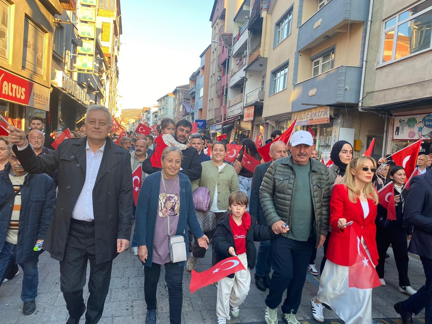 Fener alayına Kaymakam Rüveyda Kahraman Sıktaş, Belediye Başkanı Vedat Öztürk, Siyasi partilerin temsilcileri, daire amirleri, sivil toplum örgüt temsilcileri belediye bandosu eşliğinde vatandaşlarla birlikte yürüyüşe katıldı. Ellerinde Türk bayrakları ve meşalelerle yürüyen vatandaşlar, marşlar söyleyerek Cumhuriyet coşkusunu doyasıya yaşadı.