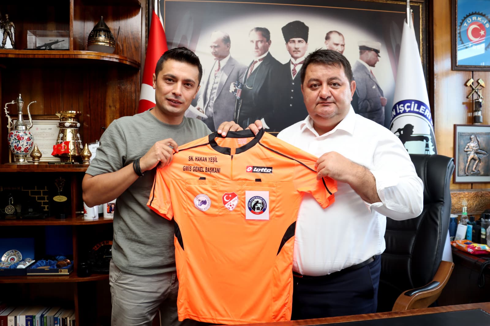 Yıldıray Pulat ve Bayram Çiv, Başkanvekili Mustafa Çimen, Genel Sekreter İsmail İnam, yönetim kurulu üyesi Recep Onur Güner ile birlikte GMİS Genel Başkanı Hakan Yeşil’e ziyarette bulundu. Yeşil’e, Genel Başkan Yardımcısı İsa Mutlu, Genel Sekreter Yener Arslanbuğa eşlik etti. Gençlik yıllarında 5 yıl boyunca faal futbol hakemliği yapan Genel Başkan Hakan Yeşil’e, hakem forması ve gözlemci kartı hediye edildi. Yeşil, hakemlik döneminde güzel anılar biriktirdiğini ve tüm hakemlere başarılar dilediğini söyledi. Pulat ve Çiv de hakemliğin önemli bir görev olduğunu aktararak tüm hakemlere iyi bir sezon dileğinde bulundu.
