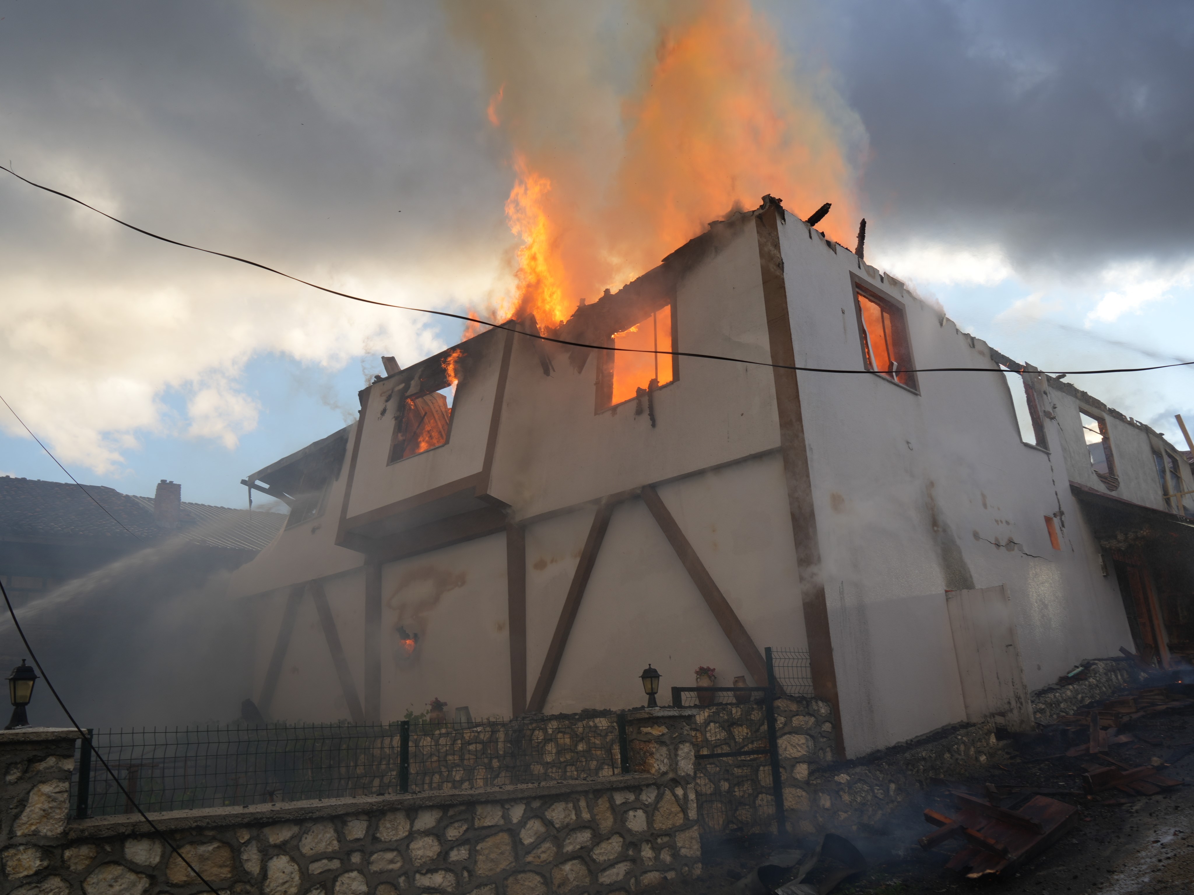Olay, Merkez ilçe Baylar köyünde meydana geldi. Edinilen bilgiye göre, Nimet Pehlivan'a ait iki katlı konakta henüz belirlenemeyen bir sebeple yangın çıktı. Yangın sırasında evde abdest alan Nimet Pehlivan, seslerin geldiğini fark ederek son anda dışarı çıktı. Dumanların yükseldiğini gören köylüler, durumu 112 Acil Çağrı Merkezine bildirdi. İhbar üzerine olay yerine itfaiye ve Orman İşletme Müdürlüğü ekipleri sevk edildi. Ekiplerin müdahalesiyle yangın, diğer evlere sıçramadan söndürüldü. Yangında iki katlı konak kullanılamaz hale gelirken, Baylar Köyü Muhtarı Cemal Başoğlu'na ait ev ise kısmen zarar gördü. Vatandaşlar, binaların çatısına çıkarak ekiplerin söndürme çalışmalarını izledi.