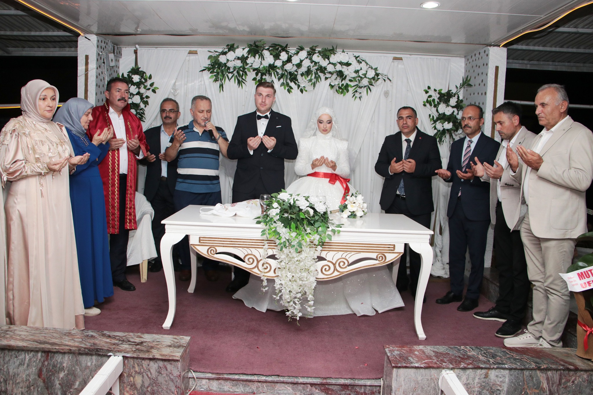 Genç çiftin nikâh şahitliğini yapan MKYK Üyesi Mehmet Ali Kurt, nikâh cüzdanını İrem Nur ve Samet’e takdim etti.
