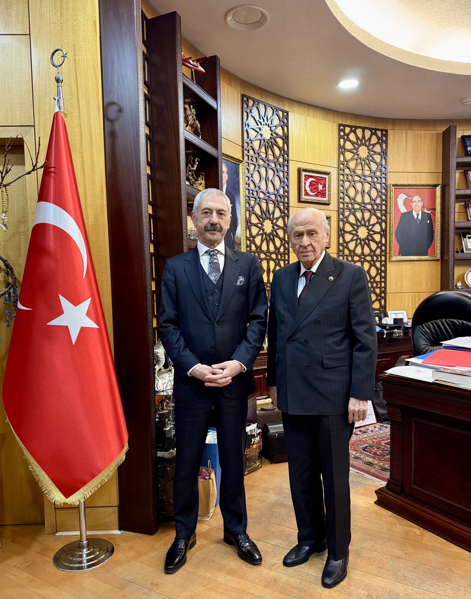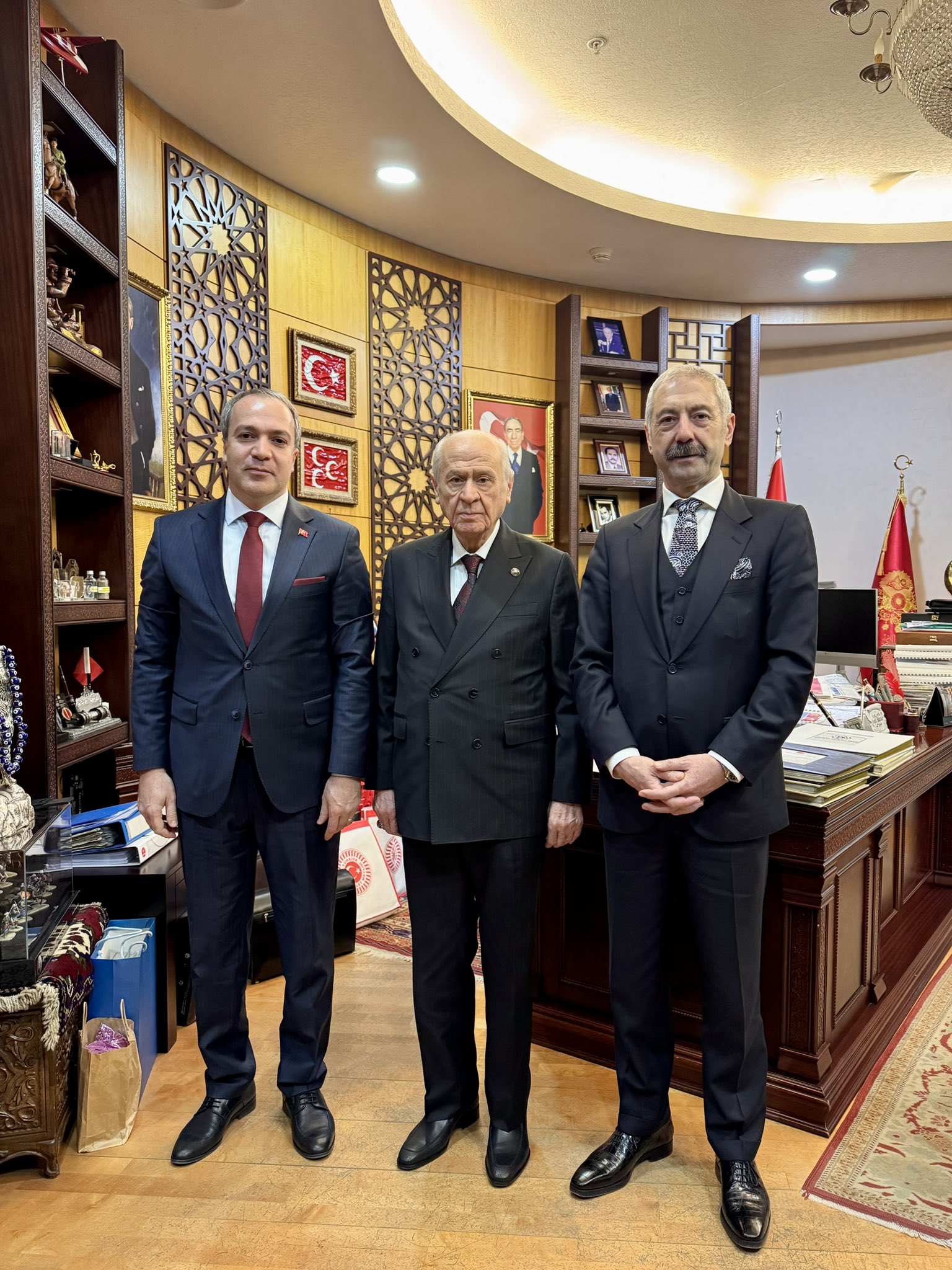 İş insanı Sedat Şahin, Milliyetçi Hareket Partisi (MHP) Genel Başkanı Devlet Bahçeli’yi makamında ziyaret etti. Ziyarette MHP Merkez Yönetim Kurulu (MYK) Üyesi Mustafa Çavuş da yer aldı.