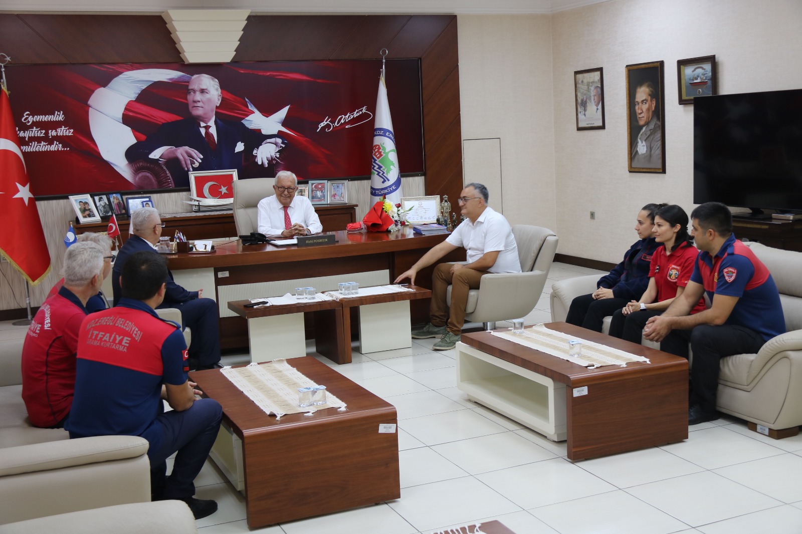 Belediye Başkan Yardımcısı Atilla Bulak ve İtfaiye Müdürü Muhammet Ali Ateş, itfaiye personeli ve gönüllü itfaiyecilerle birlikte Başkan Halil Posbıyık’ı makamında ziyaret ederek İtfaiye Teşkilatı’na destekleri için çiçek takdim ettiler. Başkan Posbıyık, “İtfaiye haftasını kutluyorum, canla-başla çalışan arkadaşlarımıza başarılar diliyorum” dedi.