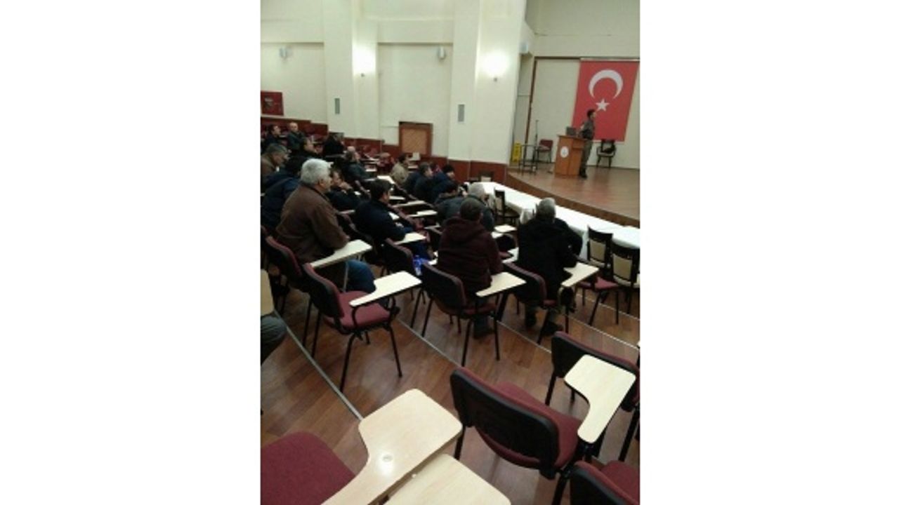 Öğretmen Evi toplantı salonunda gerçekleştirilen eğitim toplantısına Zonguldak Milli Eğitim taşımalı okul servisi şoförlerinden 105 sürücü katıldı.