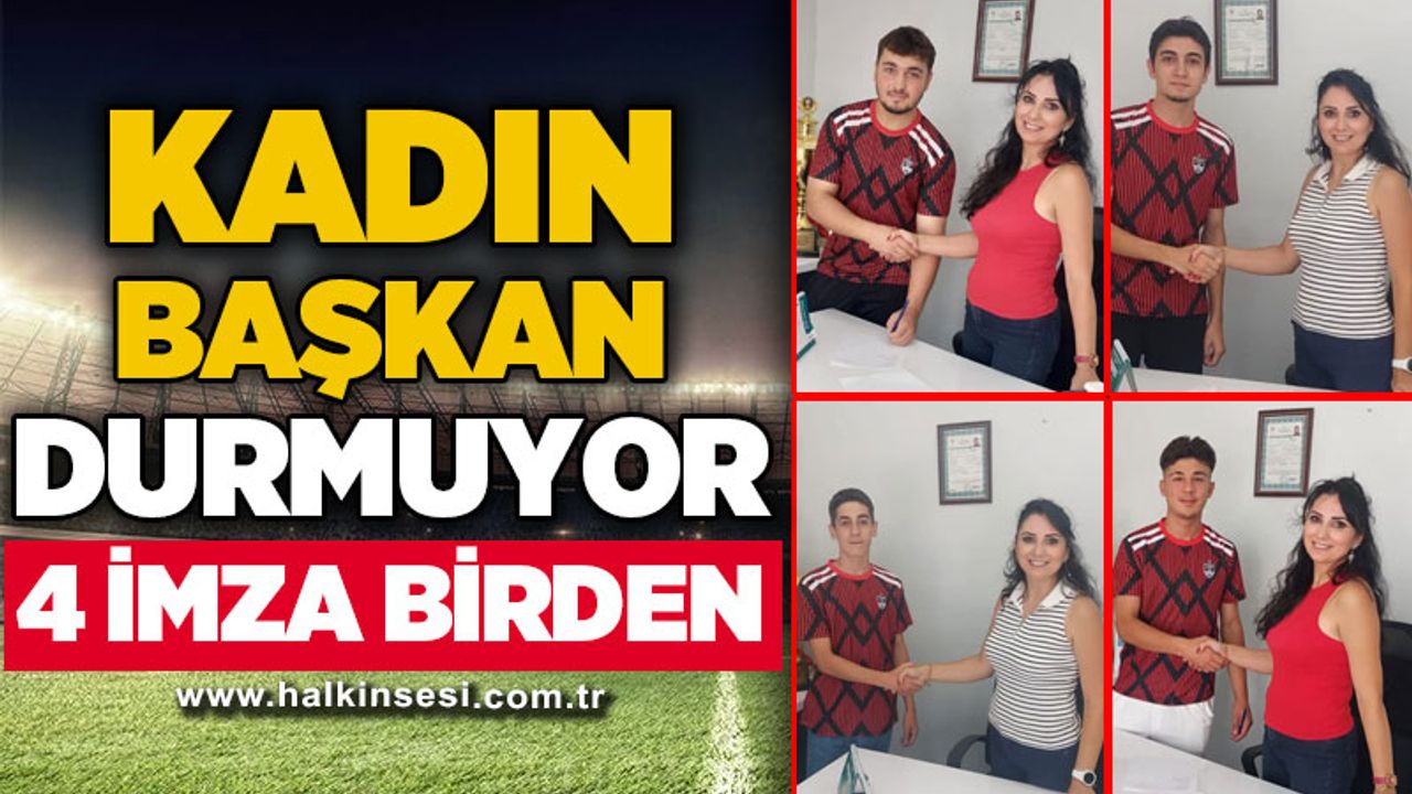 4 oyuncu Filyos Sefercikspor Kulüp Başkanı Pınar Aşkın nezaretinde kendilerini kırmızı- beyazlı yapan imzayı attılar.
