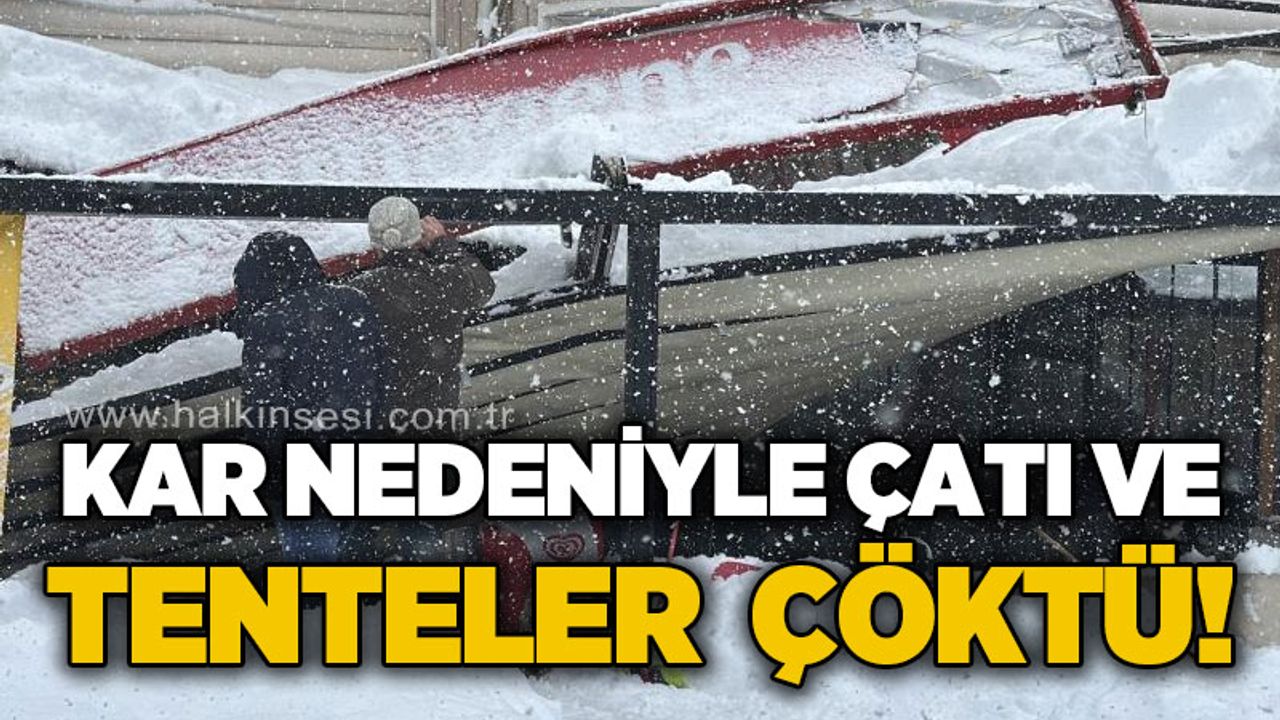 Olay, Sadri Artunç Caddesi’nde meydana geldi. Yoğun kar yağışının ardından biriken karın ağırlığına dayanamayan iş yerlerine ait çatı ve tenteneler çöktü.
