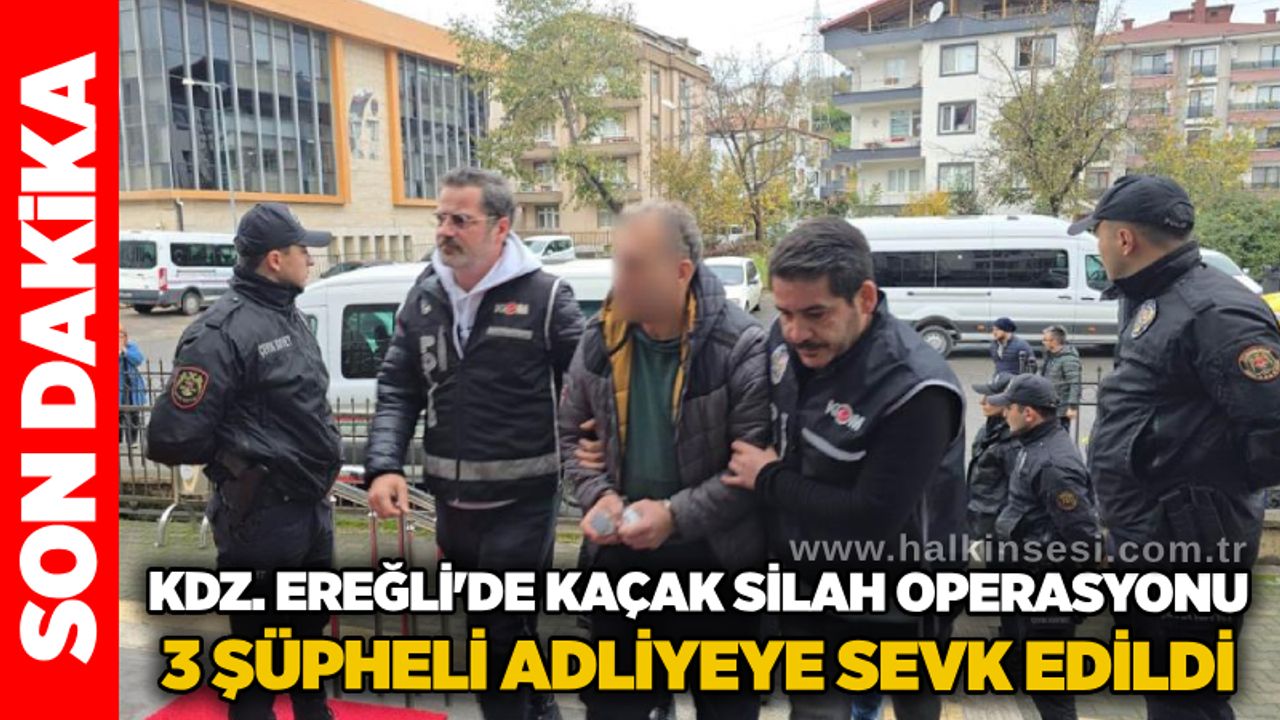 Edinilen bilgilere göre, İl Emniyet Müdürlüğü Kaçakçılık ve Organize Suçlarla Mücadele (KOM) ekipleri, Karadeniz Ereğli ve Alaplı ilçelerinde silah imalatı, ticareti ve sevkiyatı yaptıkları değerlendirilen şüphelilere yönelik operasyon düzenledi. Farklı adreslere eş zamanlı gerçekleştirilen baskınlarda polis memuru E.Ö., polis memuru B.K. ile A.K., Ş.M., N.G. ve S.S. gözaltına alındı. Aramalarda çok sayıda silah ve silaha ait parçalar ele geçirildi.