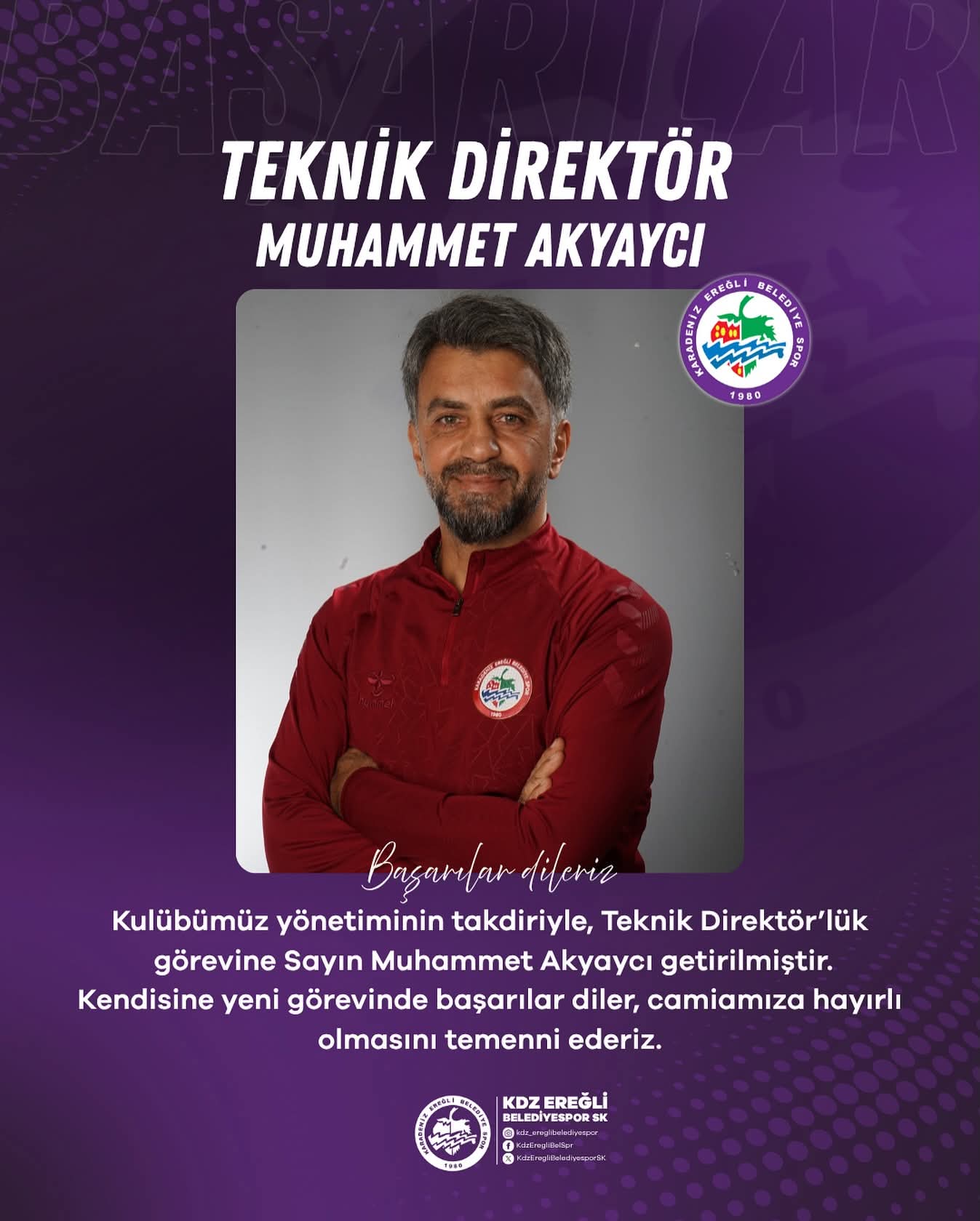 Kdz. Ereğli Belediyespor, teknik direktörlük görevine Türk futbolunun deneyimli ismi Muhammet Akyaycı’yı getirmiştir.