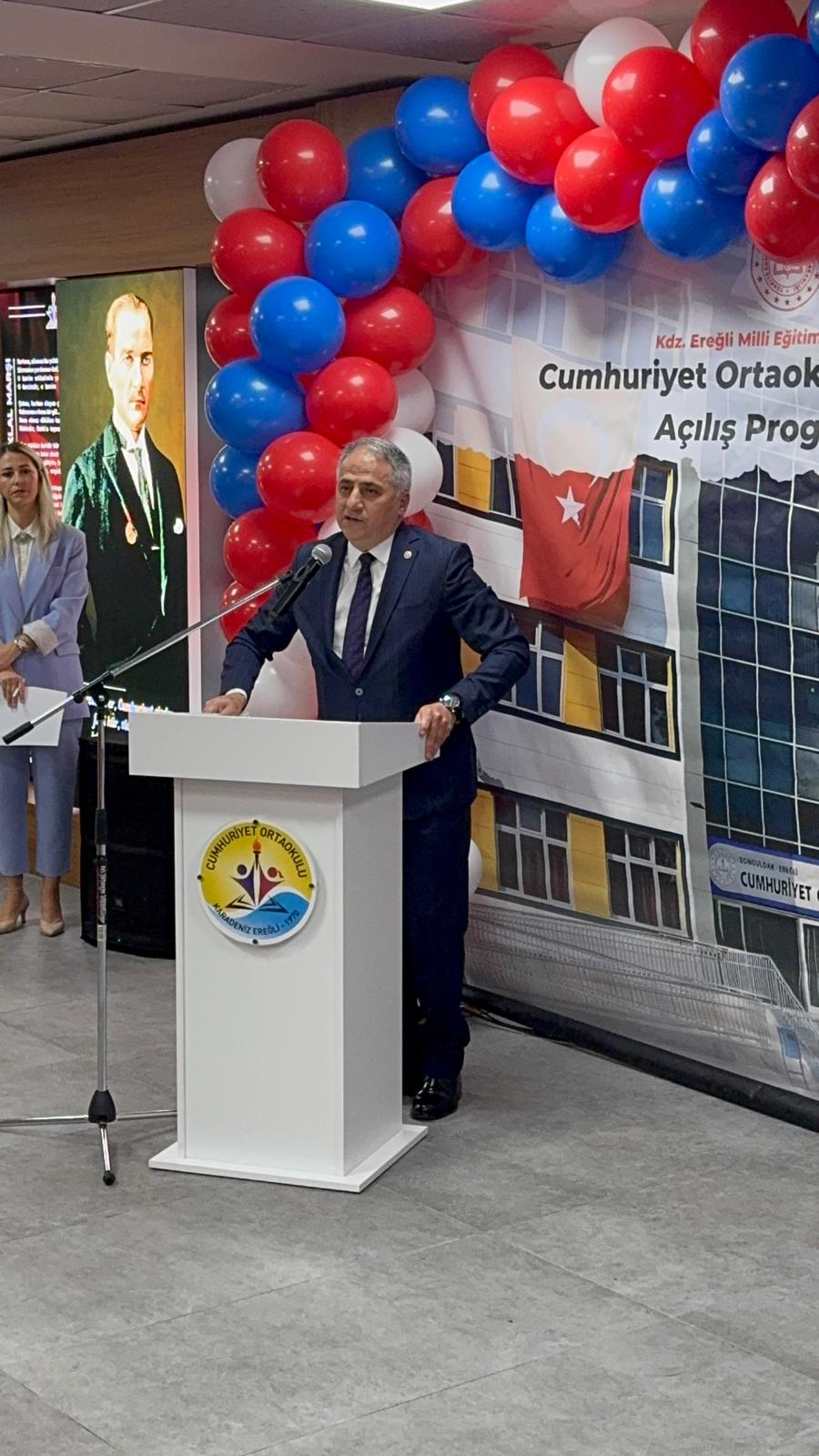Ardından kürsüye çıkan Zonguldak Milletvekili Saffet BOZKURT, yeni dönemde eğitim yatırımlarının hız kazandığını ifade eden Bozkurt, Ereğli için büyük öneme sahip Cumhuriyet Ortaokulu’nun yeniden kazandırılmasının ilçe eğitimine ciddi katkılar sunacağını kaydetti. Ayrıca, 3 Aralık Dünya Engelliler Günü’nde Cumhurbaşkanımız Sayın Recep Tayyip EERDOĞAN’ın eşi Emine ERDOĞAN’ın katılımıyla özel eğitim kampüsünün açılışının yapılacağını duyurarak eğitime verilen önemin altını çizdi.