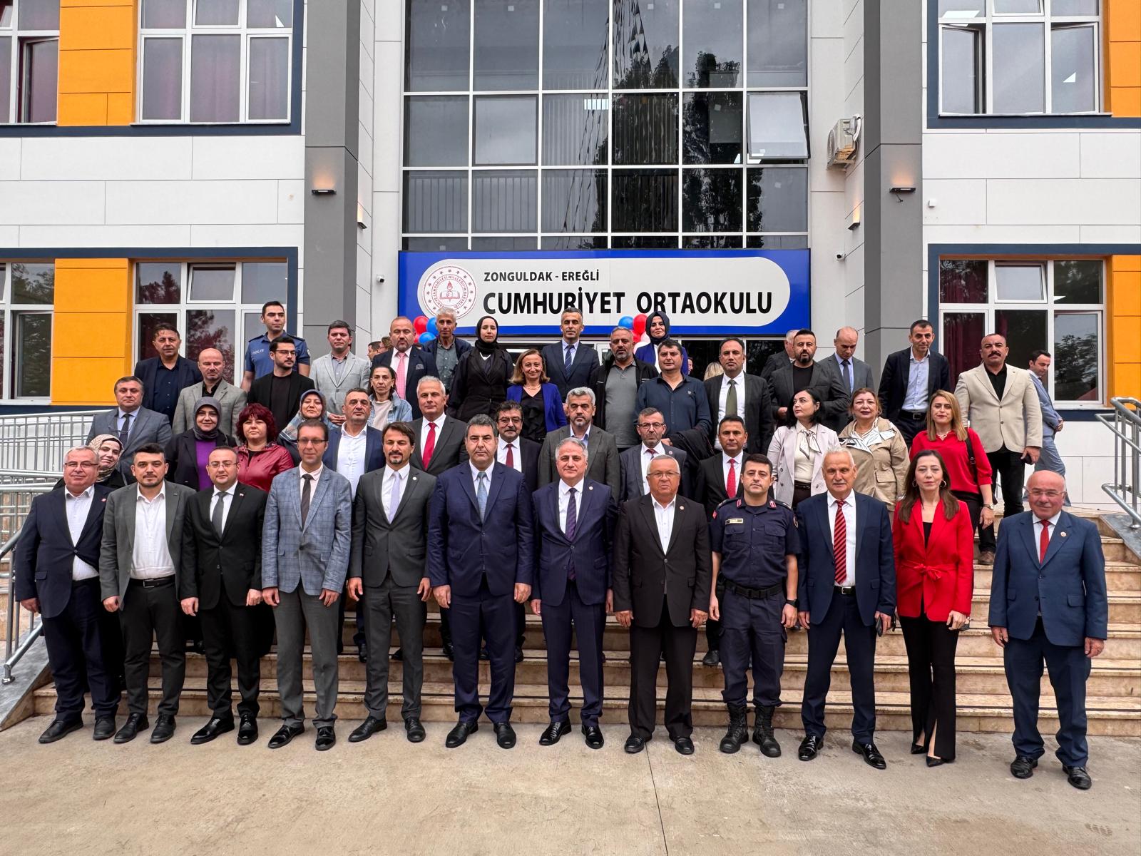 Konuşmaların ardından protokol üyelerinin katılımıyla gerçekleşen kurdele kesimiyle Kdz. Ereğli Cumhuriyet Ortaokulu resmen açıldı. Açılış sonrası Kdz. Ereğli Kaymakamı Fatih YILMAZ ve beraberindeki protokol üyeleri sınıfları gezerek öğrencilerle bir araya geldi. Öğrencilerle samimi sohbetler gerçekleştiren protokol üyeleri, yeni eğitim-öğretim yılında başarı temennilerinde bulundular.