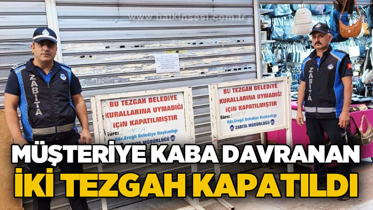 Kdz. Ereğli Belediyesi Zabıta Müdürlüğü ekiplerinin incelemesi sonrası müşteriye kaba davranan ve hakarette bulunan 2 tezgah encümen kararıyla 1 hafta süreyle kapatıldı.