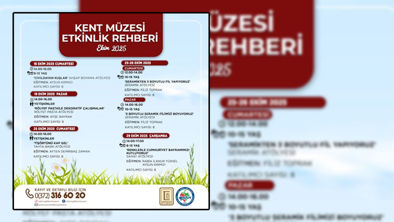 Ekim ayında yapılacak olan atölyelere katılarak hayal gücünü sanatla buluşturmak isteyenler, 0(372) 316 60 20 numaralı telefondan (Saat: 17.00’a kadar) arayarak kayıt yaptırabilirler.