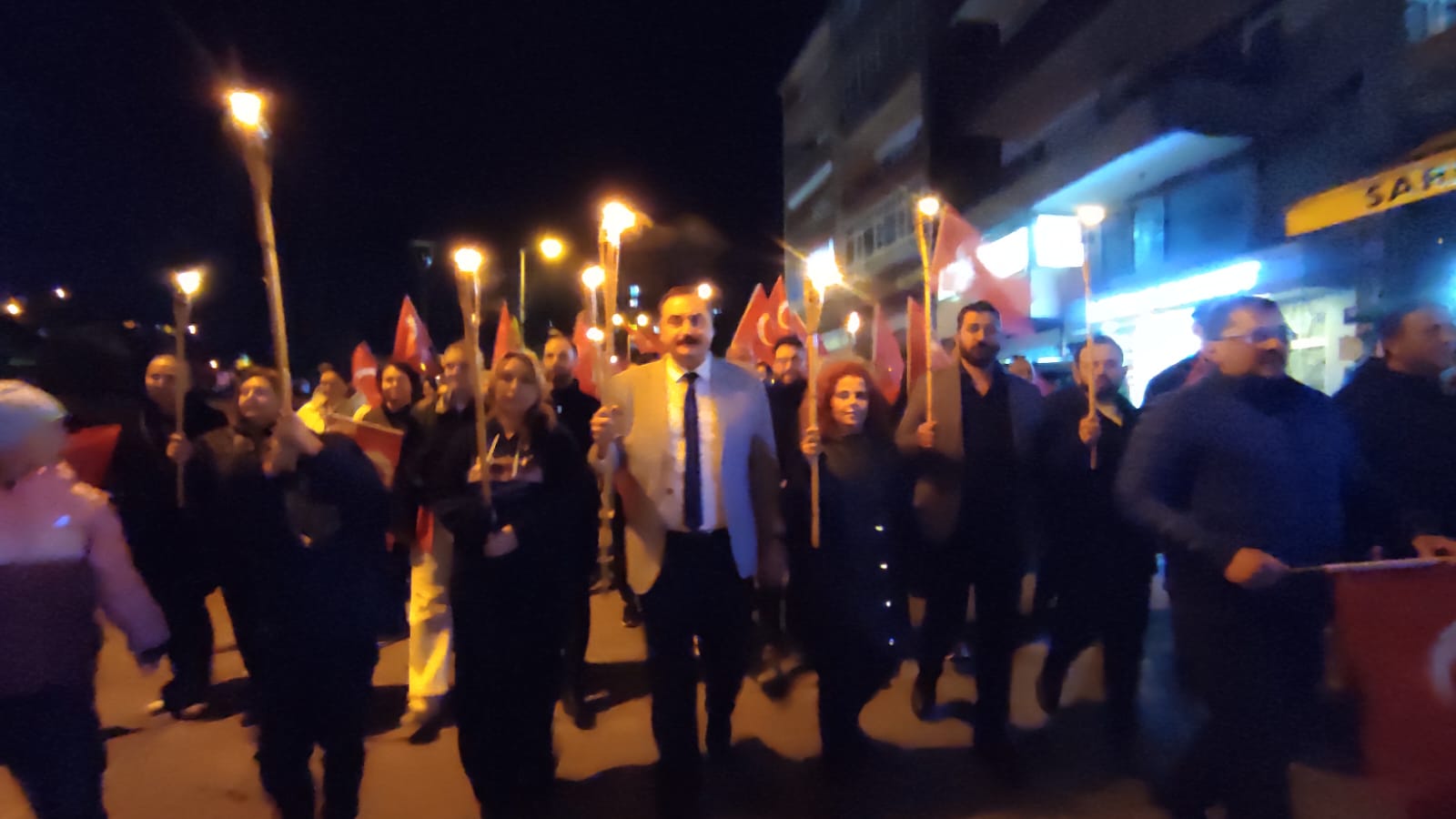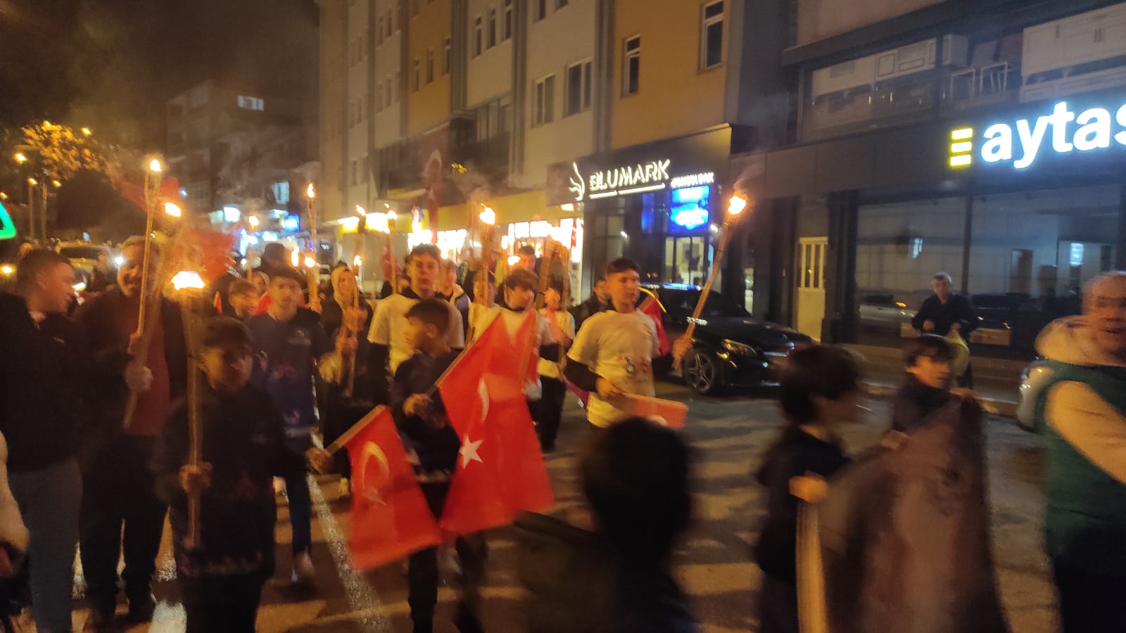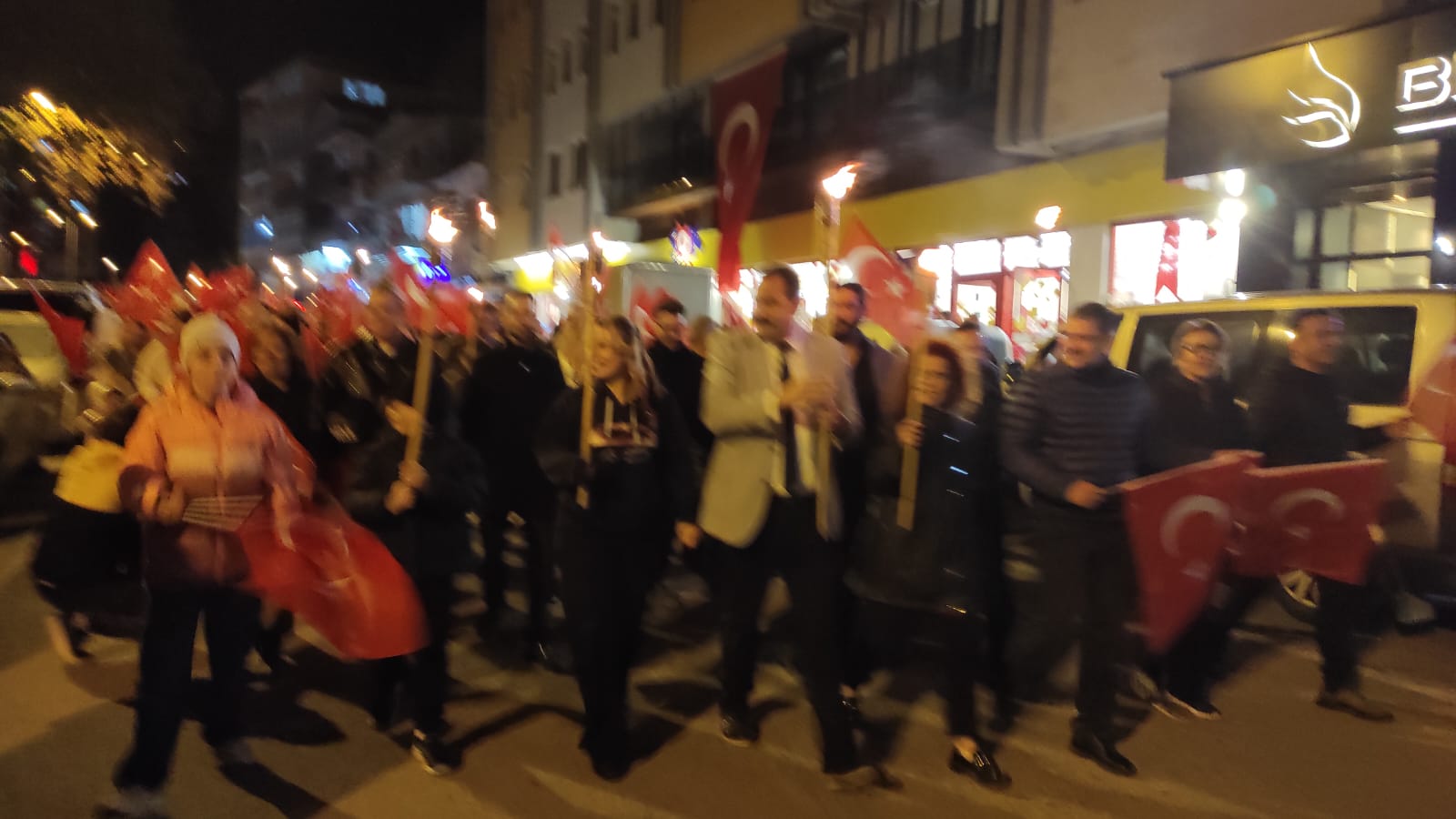 Ellerinde ay yıldızlı Türk bayrakları ve meşaleler taşıyan yüzlerce vatandaş, Kozlu Belediyesi önünde toplanarak Anfi Tiyatro’ya yürüdü.