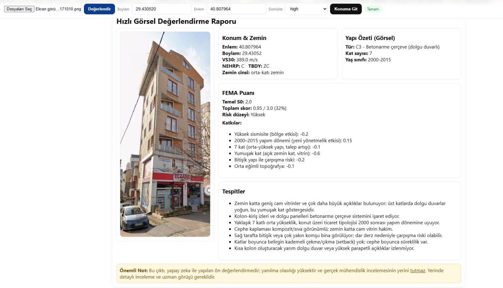 Kutoğlu açıklamasında şu görüşlere yer verdi: Gebze'de yıkılan binanın zemininde problem var mıydı? Öğrenmek için İstanbul Anadolu yakasının son üç yıl radar uydu verisini analiz ettim. Resimde gördüğünüz üzere yeşil nokta binanın lokasyonu. Yani bina süregelen bir deformasyon alanı (sarı renkli alan) içinde kalıyor. Hareket hızı yıllık -6 mm civarı. Bu gibi durumlarda binanın bir kısmı sarı alanda diğer kısmı mavi alanda kalıyorsa daha kötü, çünkü farklı zemine basan yapılar burulmaya maruz kalabilir. Binanın görüntüsüne bakıldığında geometrisinde de bazı bozukluklar görüldüğünden, bina resmini son geliştirdiğimiz yapay zeka bina değerlendirme yazılımına verdim. Rapor ikinci resimde verdiğim gibi çıktı. Bu arada daha güneyde beyaz okla işaretledim yere de ayrıca saha kontrolu yapılması gerek Anlayana sivri sinek saz.”