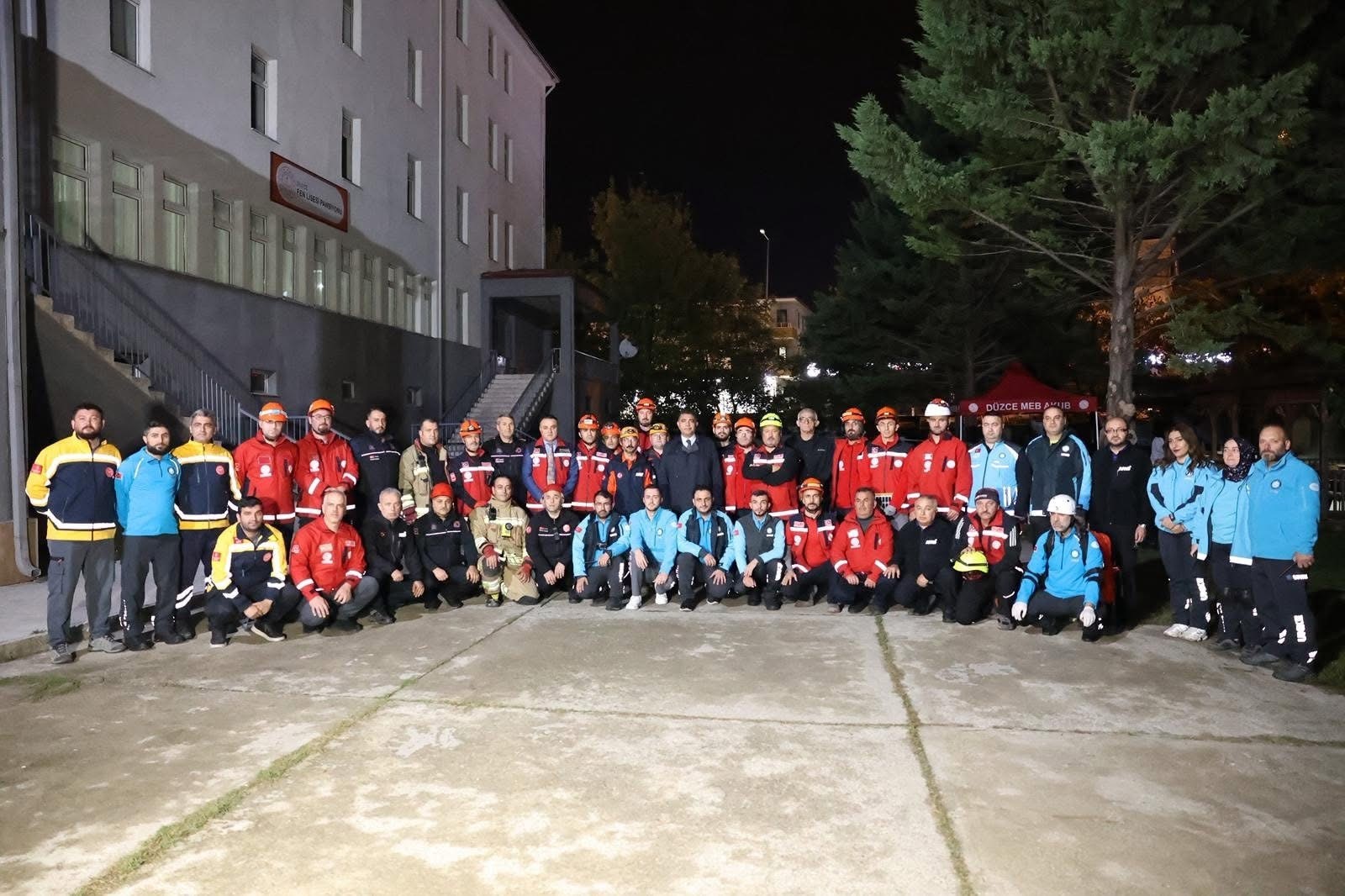 Düzce’de 6.3 büyüklüğünde senaryo gereği orta ölçekli deprem meydana geldi. Depreme bağlı olarak Fen Lisesi pansiyonunda da yangın çıktı. Senaryo gereği kısa süre içerisinde bölgeye gelen sağlık, itfaiye ve arama kurtarma ekipleri okulda mahsur kalan çocukların itfaiye merdivenleri ile kurtardı. Yaralanan çocuklar ise sağlık ve UMKE ekiplerinin çalışması ile ilk yardımları yapılmasının ardından hastaneye kaldırıldı. Tatbikat gerçeğini aratmazken, Düzce Valisi Selçuk Aslan’da tatbikatı yerinde takip etti.