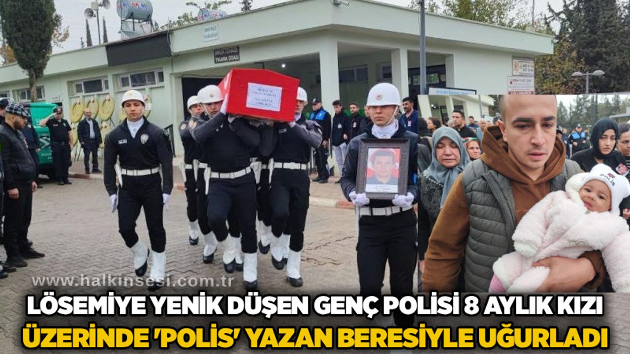 Bir süredir lösemi tedavisi gören 27 yaşındaki 3 yıllık polis memuru İsa Azmaz, Yüreğir Başkent Hastanesi'nde dün hayatını kaybetti. Evli ve Melisa isimli 8 aylık bebeği olan genç polis memuru için bugün Buruk Mezarlığı'nda tören düzenlendi. Azmaz'ın Türk bayrağına sarılı cenazesi, gasilhaneden silah arkadaşları tarafından alındı. Polisin naaşı mezarlığa silah arkadaşlarının omuzlarında getirilirken, anne Şerife Azmaz (53) ve eşi Melike Azmaz (26) ve diğer yakınları gözyaşlarına boğuldu. Genç polisin geride bıraktığı 8 aylık kızı ise babasını üzerinde "polis" yazan beresiyle uğurladı. Düzenlenen törenin ardından genç polisin naaşı, toprağa verilmek üzere cenaze aracıyla Osmaniye'nin Kadirli ilçesine bağlı Akköprü köyüne götürüldü.