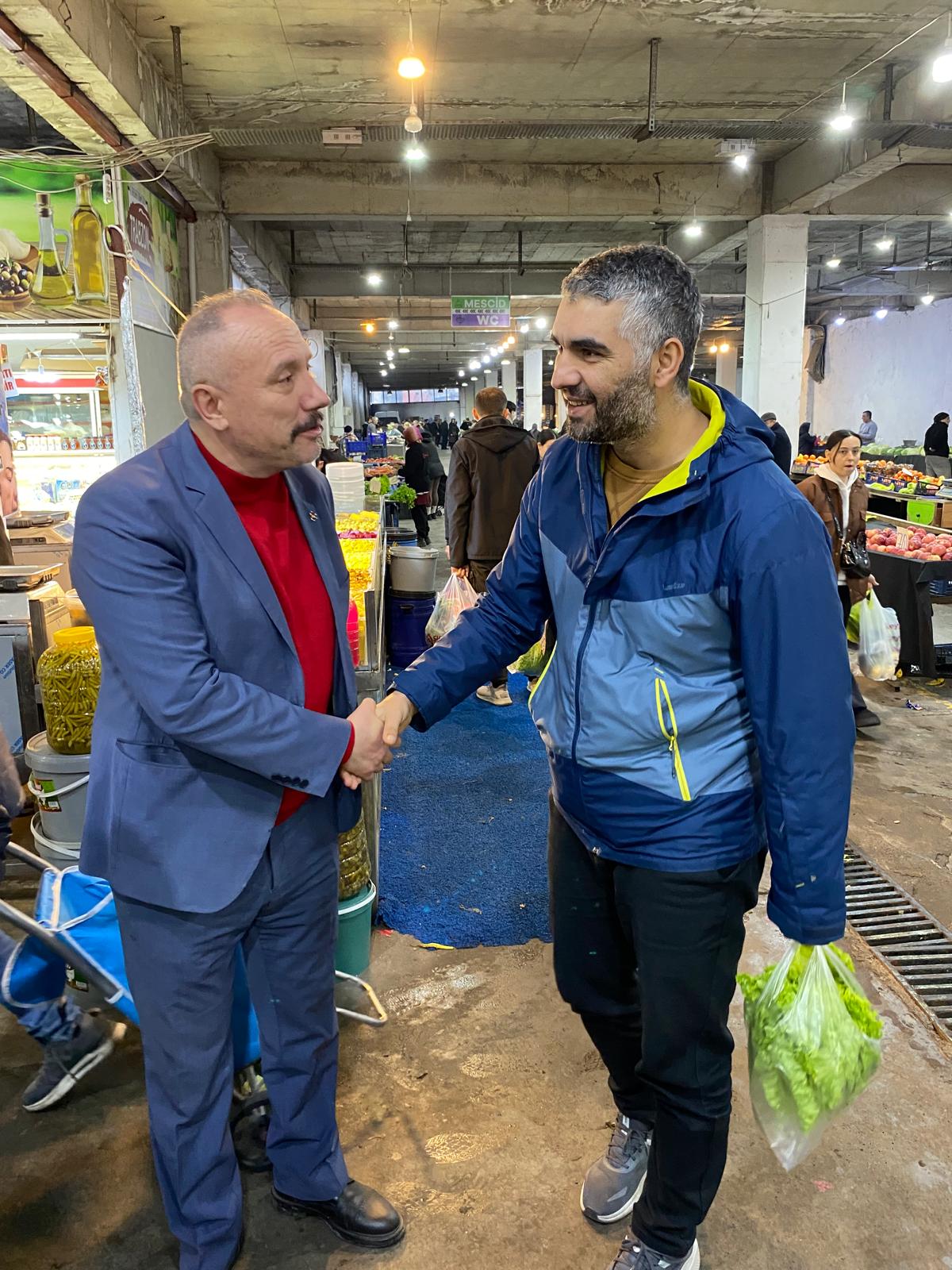 Pazar ziyareti sırasında pazarcı esnafının yaşadığı sorunlar ile vatandaşların talep ve beklentileri birebir dinlendi. İlçe Başkanı Atakan Örer, samimi sohbetlerin gerçekleştiği programda, halkla kurulan gönül bağının MHP’nin siyaset anlayışının temelini oluşturduğunu vurguladı.