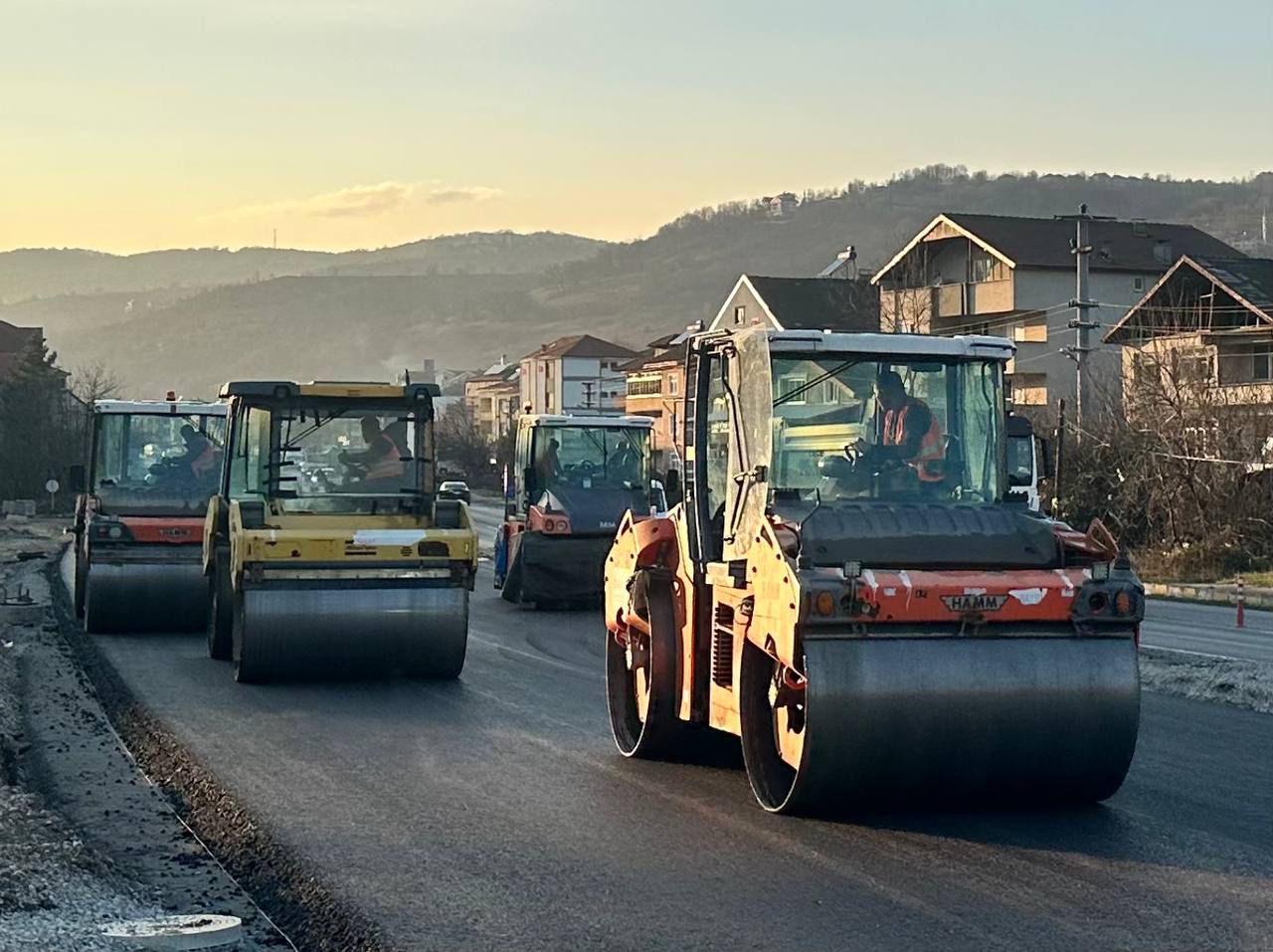-1550 metrelik kesimin, 930 m’lik kısmında sıcak karışım asfalt serimi tamamlanmış, 620 metrelik kesimde çalışmalar devam etmektedir.