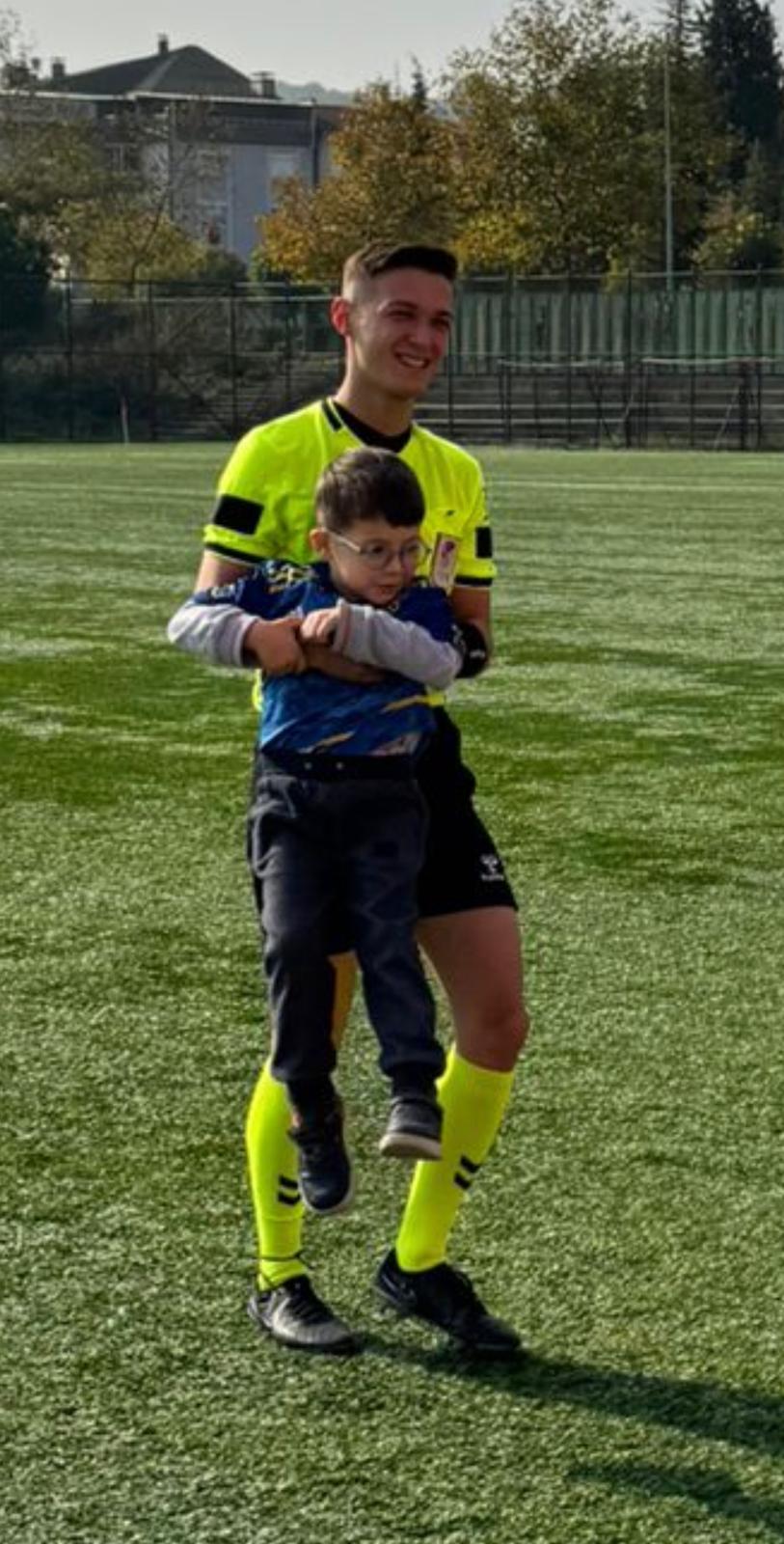 Çaycumaspor formasıyla sahaya giren minik taraftarın, futbolcu olan abisini aramak için sahaya girdiği öğrenildi. Hakem ve futbolcuların tebessümle karşıladığı bu sürpriz ziyaret, saha kenarında bulunan izleyicilere de keyifli anlar yaşattı.