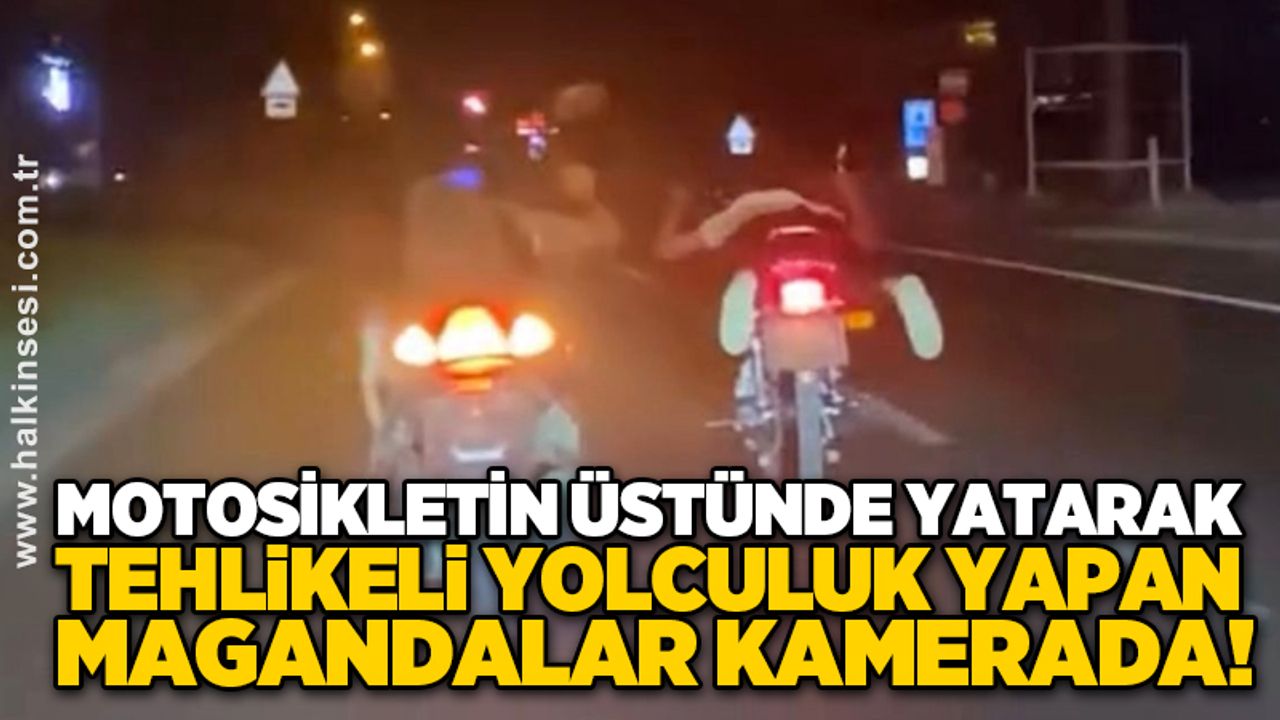 Bolu’da gece saatlerinde D-100 kara yolunda seyreden iki motosiklet sürücüsü, hem kendi hayatlarını hem de trafikteki diğer sürücüleri tehlikeye soktu. Motosikletlerin üzerine yatarak hızla ilerleyen sürücüler, zaman zaman yan yana gelerek tehlikeli manevralar yaptı. O anlar yoldan geçen bir vatandaşın cep telefonu kamerasıyla saniye saniye kaydedildi. Görüntülerde, motosikletlilerin dakikalarca bu şekilde ilerlediği görüldü. 2 motosiklet sürücüsü de plakasız şekilde ve motosikletin üzerinde yatarak kilometrelerce yol kat etti.
