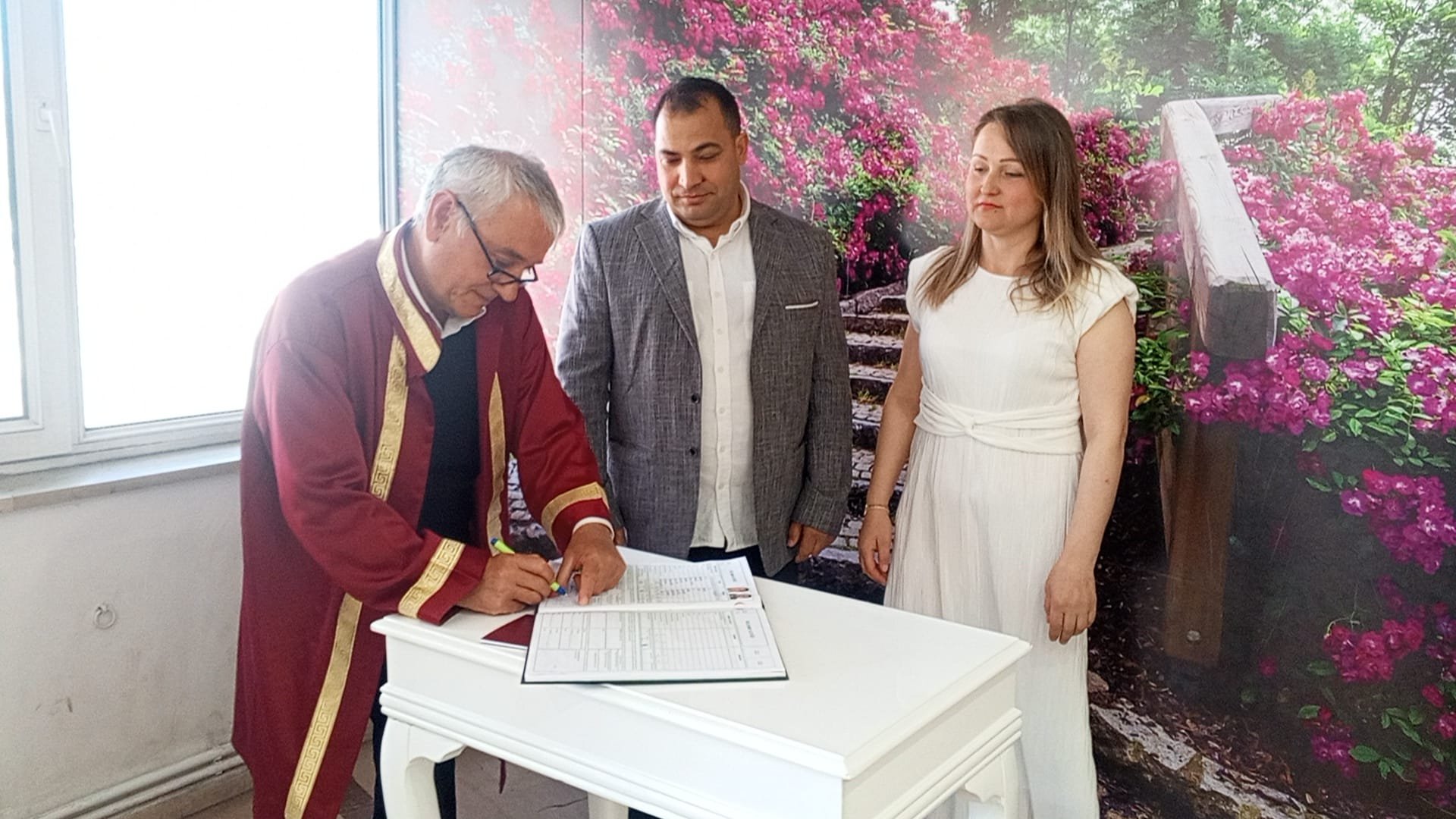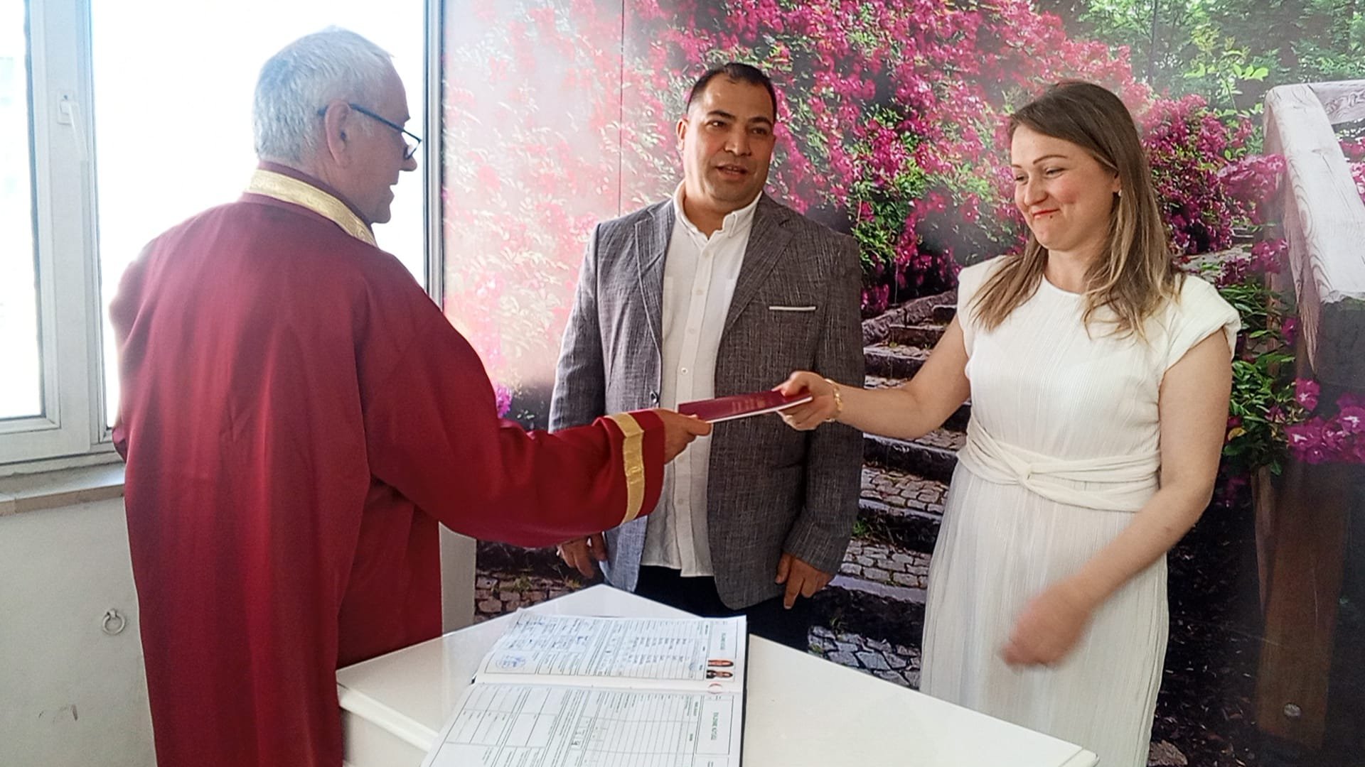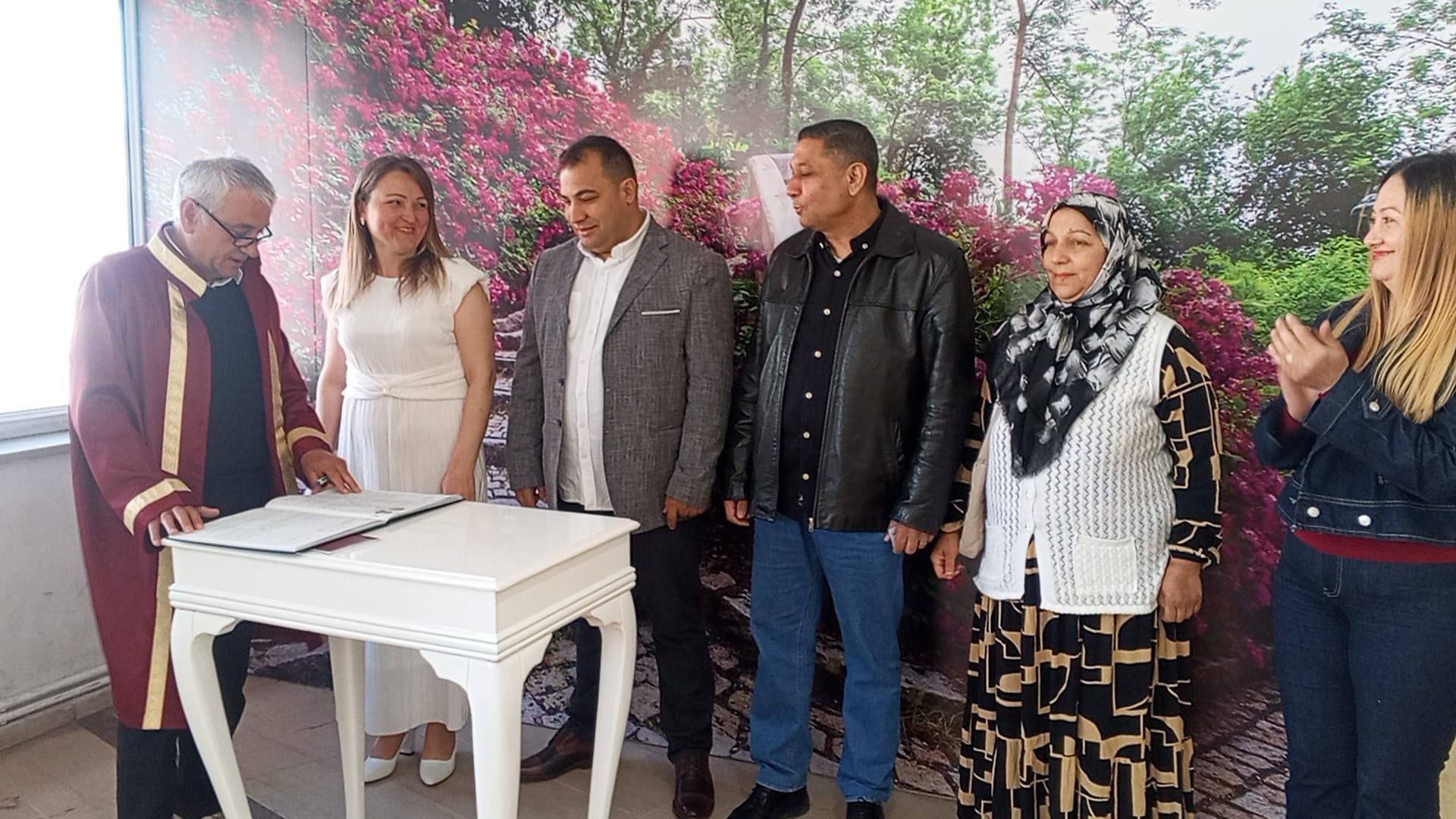 Zonguldak Belediyesi Nikâh Salonu’nda bugün gerçekleştirilen nikâh töreni, çiftin aileleri, akrabaları ve çok sayıda dostunun katılımıyla gerçekleşti. Samimi ve sıcak bir atmosferde geçen törende davetliler, genç çiftin mutluluğuna ortak oldu.