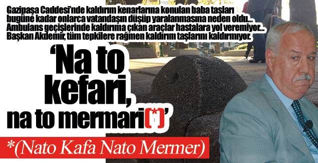 Gazipaşa Caddesi’nde kaldırım kenarlarına konulan baba taşları bugüne kadar onlarca vatandaşın düşüp yaralanmasına neden oldu… Ambulans geçişlerinde kaldırıma çıkan araçlar hastalara yol veremiyor… Başkan Akdemir, tüm tepkilere rağmen kaldırım taşlarını kaldırmıyor.