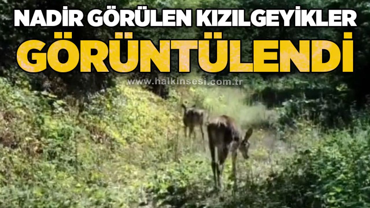 Bolu’nun doğa harikalarından biri olan Yedigöller Milli Parkı bölgesinde, nadir olarak karşılaşılan kızıl geyikler ormanlık alanda görüntülendi. Bolu Doğa Koruma ve Milli Parklar Şube Müdürlüğü tarafından kaydedilen görüntülerde, kızıl geyiklerin ormanlık alanda doğal ortamlarında hareket halinde oldukları görüldü.