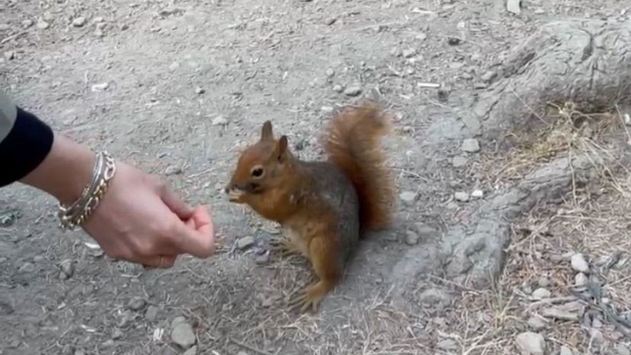 Bolu’nun doğa harikası Gölcük Tabiat Parkı’na pikniğe giden bir grup vatandaş, yanlarına gelen sincapla keyifli anlar yaşadı. Piknik sırasında bir süre çevrede dolaşan sincap, vatandaşların ilgisini çekti. Kuruyemişle beslenen sincap, uzun süre piknikçilerin yanında kalmaya devam etti. Ellerinden yiyecek alan sevimli hayvanın o anları cep telefonuyla kaydedildi. Görüntüler, kısa sürede sosyal medyada büyük ilgi gördü.
