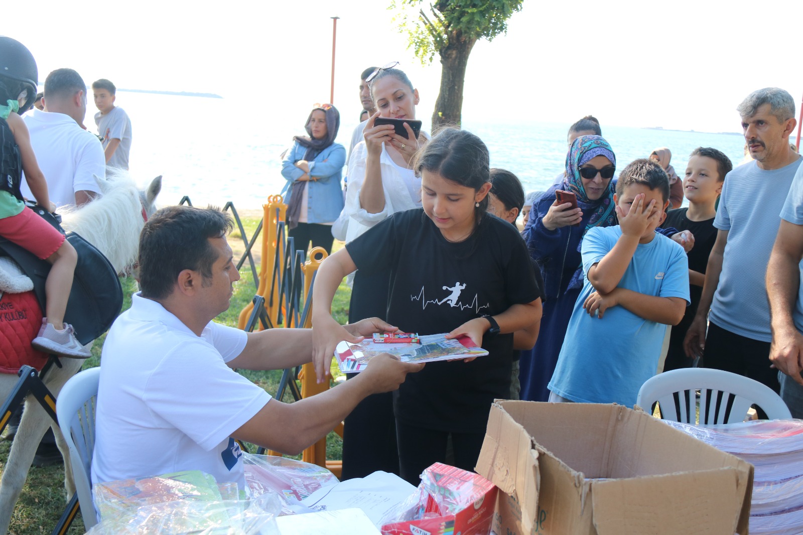 Atlarla yapılan turun ardından çocuklara puzzle, boyama defteri ve boya kalemleri hediye edilirken, alanda yer alan masalarda boyama yaparak keyifle vakit geçirdiler.