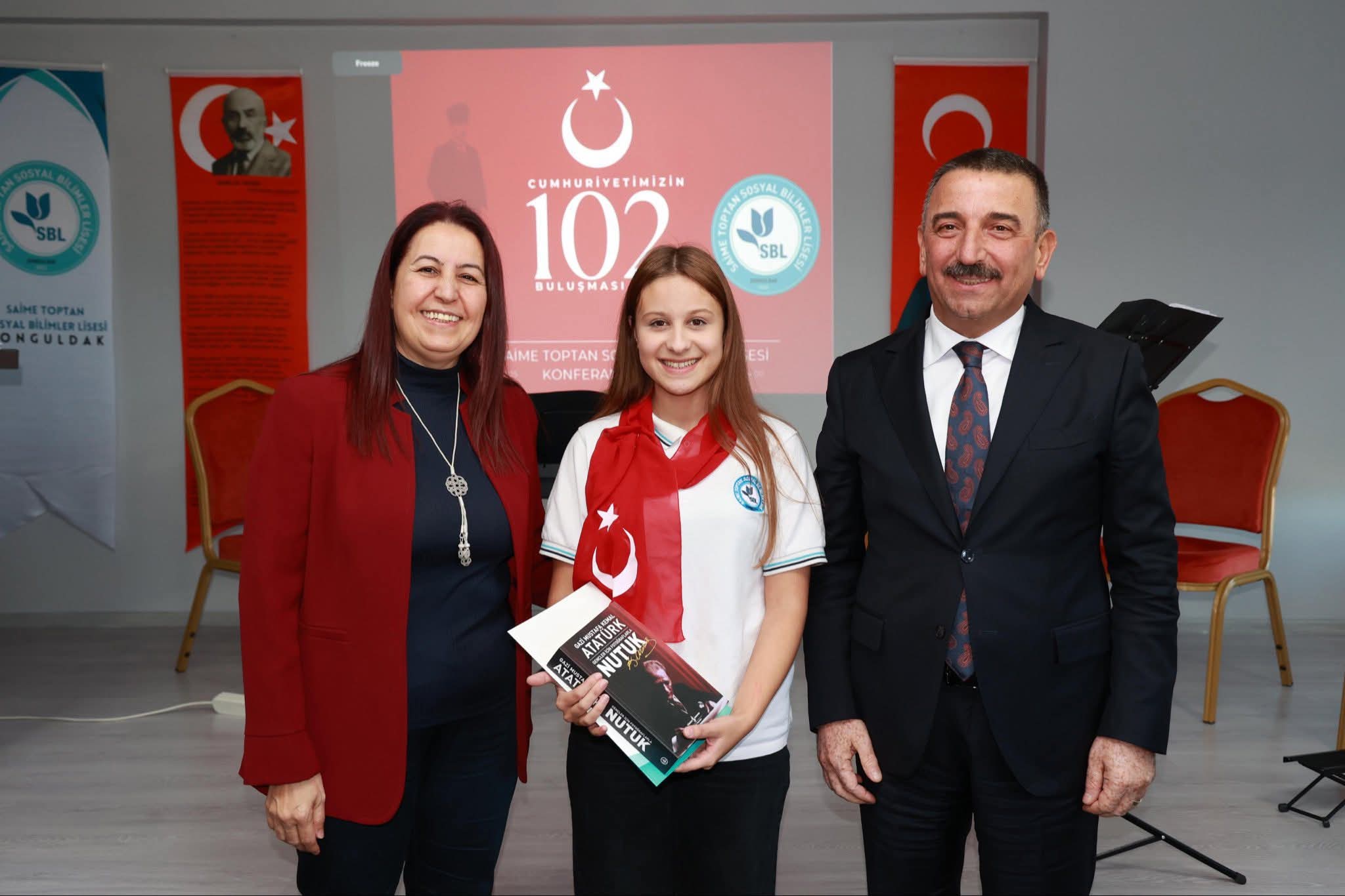 Törene; okula ismini veren Sayın Saime Toptan ve eşi Cumhurbaşkanı Yüksek İstişare Kurulu Üyesi Sayın Köksal Toptan, il protokolü, öğretmenler, öğrenciler ve veliler katıldı. Yarışmada “Yankı”, “Zafere Adım Adım” ve “Al Beyazım” adlı şiirler sırasıyla birinci, ikinci ve üçüncü oldu.