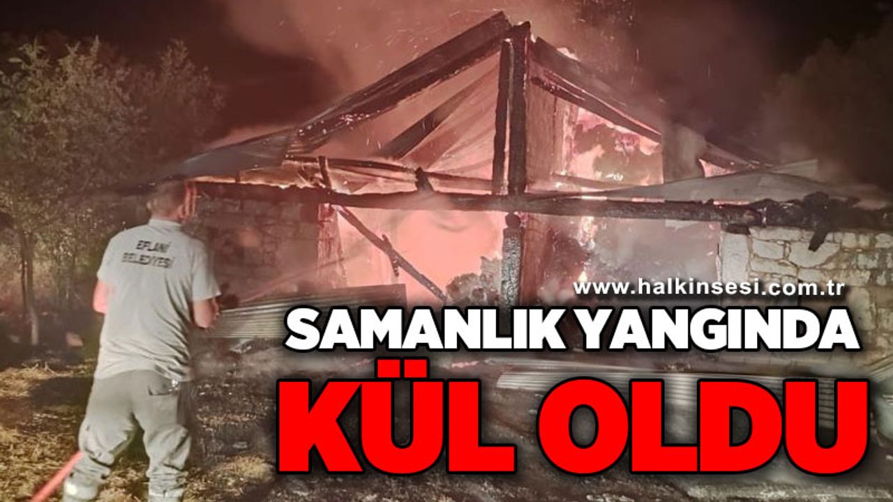 Eflani Belediyesi itfaiye ekiplerinin müdahalesiyle yangın kontrol altına alındı, ancak samanlık tamamen yanarak kül oldu.