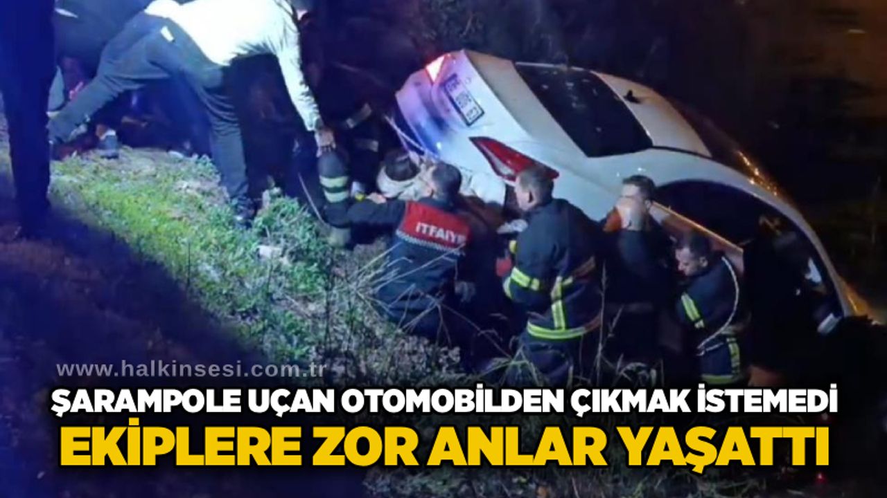 Yaralı sürücü, araçtan inmeyerek ekiplere zor anlar yaşattı.