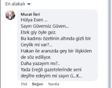 Facebook'ta Güven Kaya isimli bir şahıs tarafından kendisine yönelik yapıldığını öne sürerek tepki gösteren İleri,
