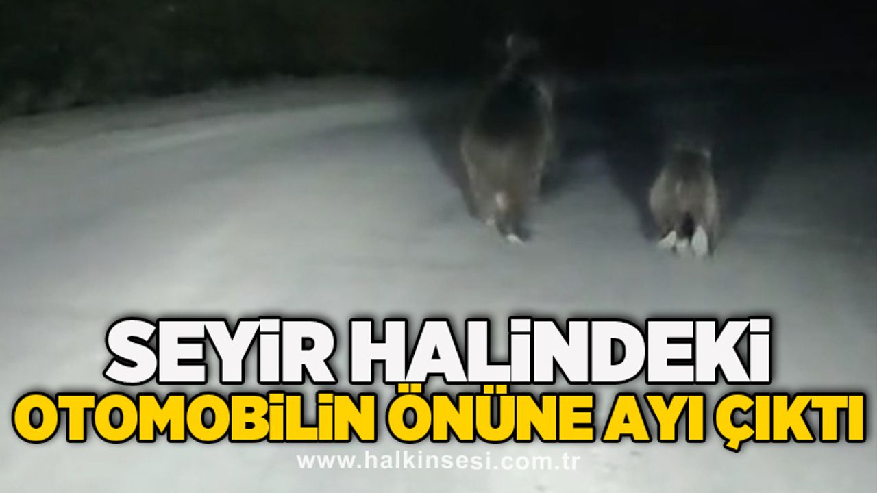 Bartın’ın Ulus ilçesi Ulukaya Kadıköyü grup yolu üzerinde otomobil ile seyir halinde bulunan bir vatandaş, yolda bulunan bir ayı ve yavrusunu gördü. Ayı ve yavrusu otomobilin ışıklarını görünce hızla kaçmaya başladı. Ayıları gören vatandaş ise cep telefonu kamerası ile o anları görüntüledi. Ayılar bir süre sonra ormana girerek gözden kayboldu.