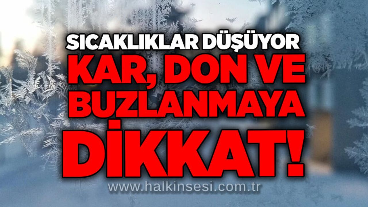 Düşük sıcaklıklar ve kar yağışı nedeniyle buzlanma ve don olaylarının yaşanabileceği, ulaşımda aksamalara karşı dikkatli olunması gerektiği vurgulandı. Ayrıca zirai faaliyetlerin sürdüğü bölgelerde çiftçilerin zirai don riskine karşı tedbirli olması istendi.