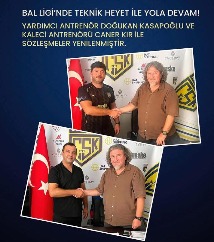 Teknik direktör Suat Kerçin'in yardımcıları sarı-lacivertli Kulüp Başkanı Şenan Kerçin ile bir araya gelerek kendilerini yeniden Çaycumasporlu yapan imzayı attı.