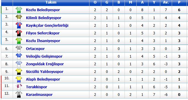 Alınan bu sonuçlar sonrasında Zonguldak Ereğlispor’a 5 gol atan ve ligde iki de iki yapan namağlup Kozlu Belediyespor, liderlik koltuğuna oturdu. Bilindiği gibi geçen hafta Filyos Sefecikspor, averajla ilk haftayı lider tamamlamıştı.