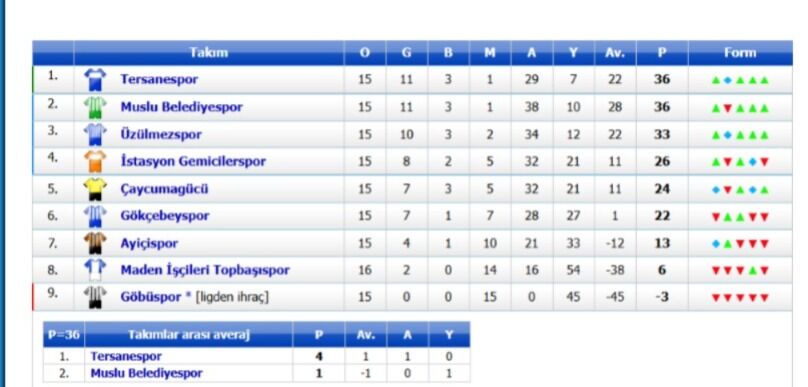 İki takımın puanlarının eşit olması halinde ikili averaj belirleyici olacak. İki ekip arasında oynanan ilk maç 0-0 berabere sonuçlanırken, ikinci maçta Tersanespor, Muslu Belediyespor’u 1-0 mağlup etti. Bu nedenle Tersanespor, son hafta maçında İstasyon Gemicilerspor’u yenmesi halinde ikili averaj üstünlüğüyle şampiyonluğunu ilan edecek.