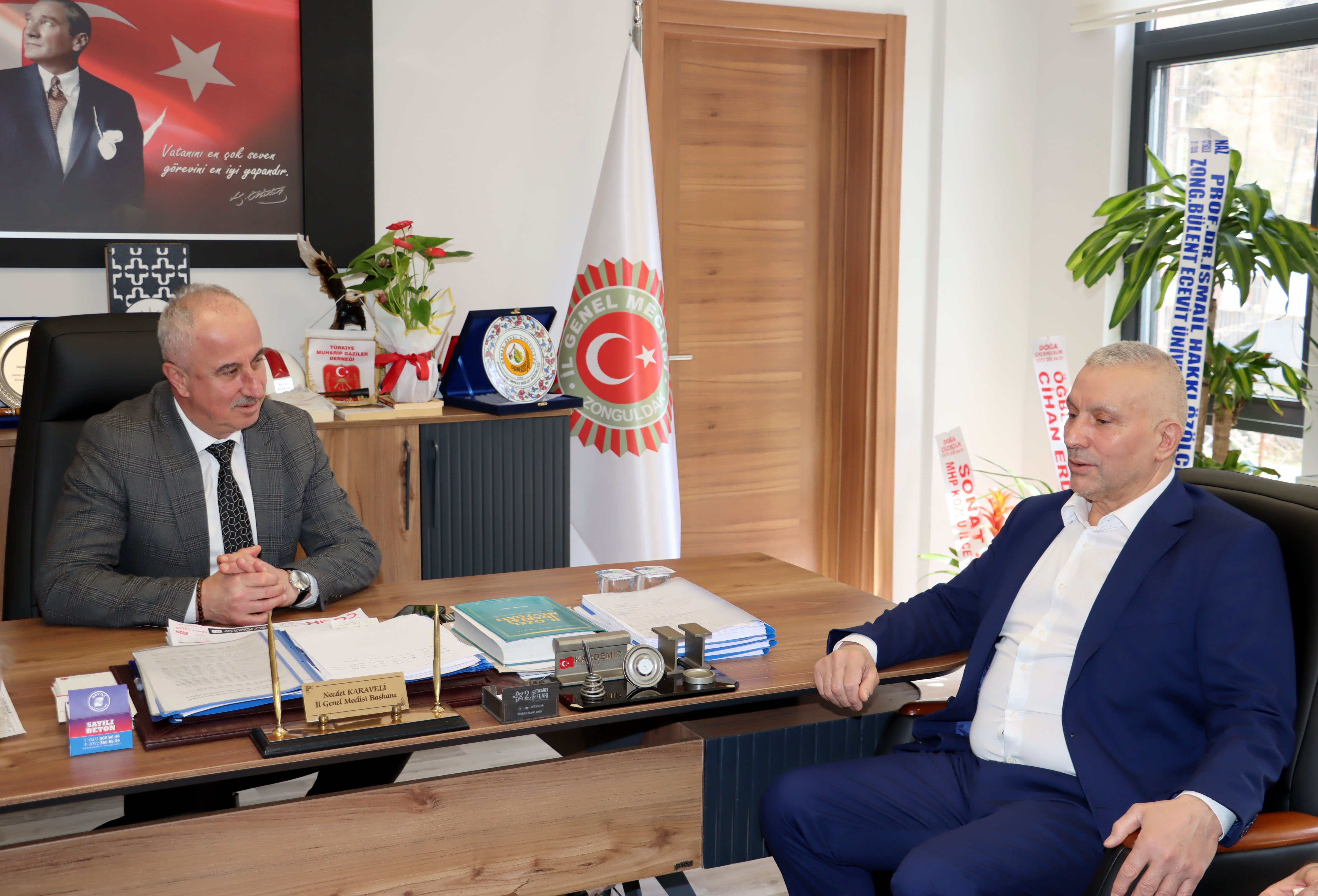 GMİS Genel Teşkilatlandırma ve Eğitim Sekreteri Tayfun Demir, ilk olarak İl Özel İdaresi Genel Sekreteri Ahmet Karayılmaz, İl Özel İdaresi Genel Sekreter Yardımcısı Mehmet Kokulu ve Yol ve Ulaşım hizmetleri Müdürü Gökhan Altun’u ziyaret etti. Demir’e emekli öğretmen Ramis Altun eşlik etti. Demir, Karayılmaz, Kokulu ve Altun’a çalışmalarında başarılar dileyerek madenci heykeli takdim etti.