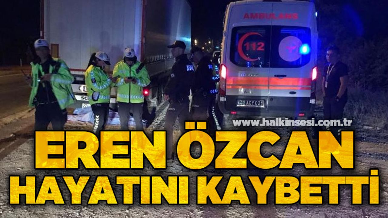 Kaza, gece saatlerinde Konya - Adana Kara yolu üzeri Ereğli Çevre Yolunda meydana geldi. Edinilen bilgiye göre, K.E. idaresindeki 11 UA 480 plakalı Volvo marka tır, yolun karşısından karşıya yaya olarak geçmeye çalışan Eren Özcan'a (20) çarptı. İhbar üzerine olay yerine sağlık ve çok sayıda polis ekibi sevk edildi. Sağlık ekipleri tarafından yapılan müdahalede Özcan'ın hayatını kaybettiği belirlendi. Yapılan incelemelerin ardından Eren Özcan'ın cansız bedeni cenaze aracıyla Ereğli Devlet Hastanesi morguna kaldırıldı.
