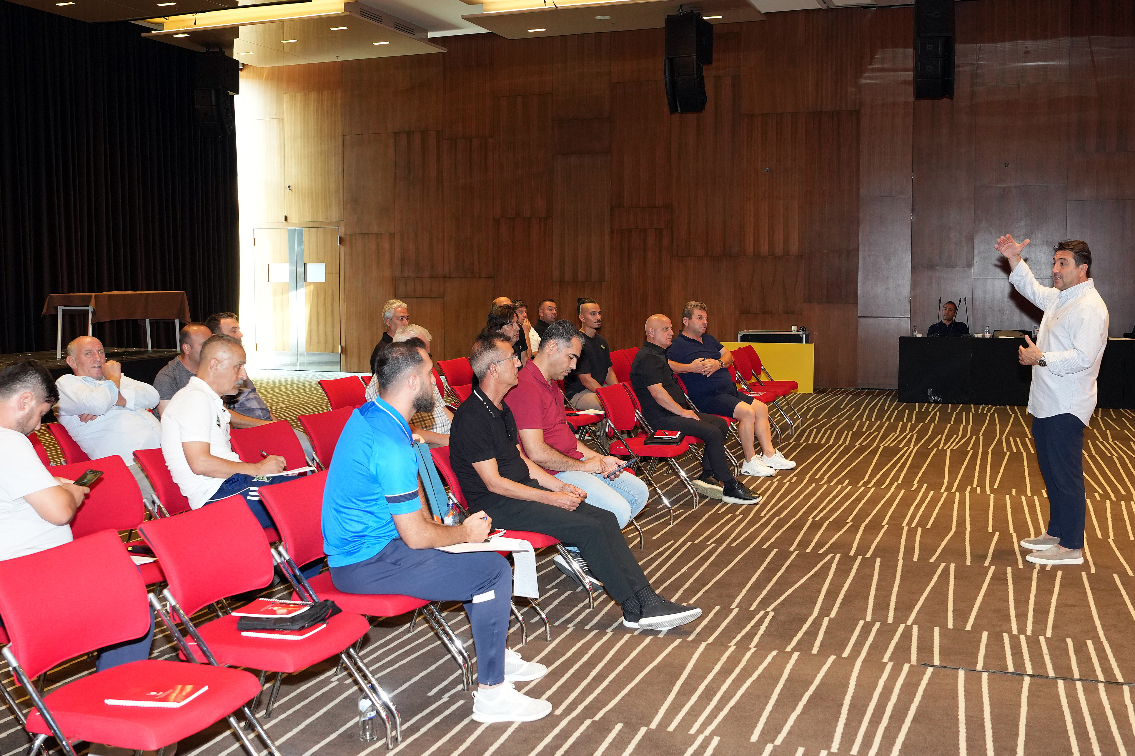 TFF Futbol Gelişim Direktörü Emrah Bayraktar'ın açılış konuşmasının ardından toplantının ilk bölümünde Üst Klasman Hakem Gözlemcisi Prof. Dr. Recep Sürhat Müniroğlu "Yeni Sezonda Değişen Futbol Oyun Kuralları", Klinik Psikologlar Çisem Diker ve Yağmur Diker "Zihinsel Dayanıklılığı Etkileyen Antrenör İletişimi" ve Engin Tuncer "Yeni Nesil Futbol Akademi Direktörlüğü" başlıklı sunumlar gerçekleştirdi.