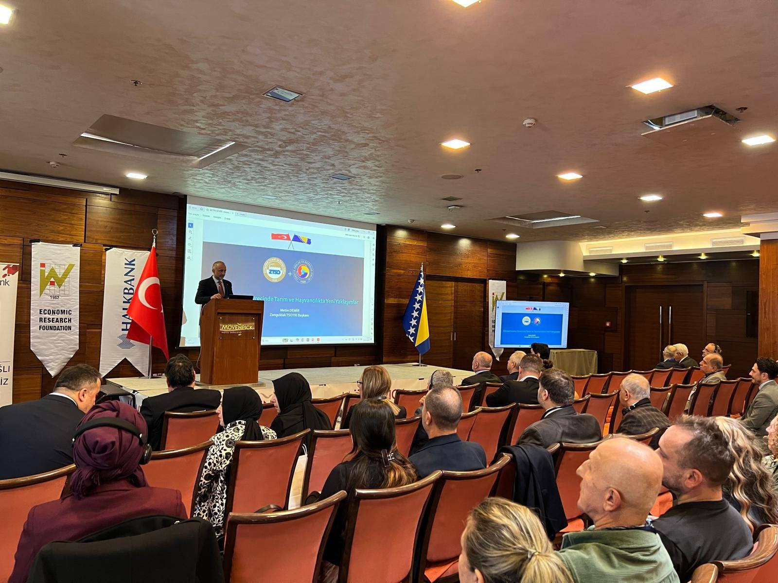 Başkan Demir; Zonguldak Ticaret ve Sanayi Odası olarak, Yönetim Kurulu Üyelerimiz, Meclis Üyelerimiz ve Genel Sekreterimizden oluşan heyet ile birlikte; Türkiye İktisadi Araştırmalar Vakfı’nın, Bosna Hersek Federasyonu Ekonomi Odası ve Bosna Hersek Dış Ticaret Odası ile birlikte düzenlediği “Türkiye- Bosna Hersek Ekonomik İlişkilerin Geliştirilmesi ve Sürdürülebilir Yeni Ufuklar’’ konulu sempozyuma katılım sağladık. Paneller ve oturumlar halinde gerçekleşen sempozyumda; Ülkemiz ve İlimiz Ekonomisinin güçlenmesi, sektörel çeşitliliğin sağlanması ve istihdamın artırılmasına yönelik yaptığımız çalışmalar dahilinde “Küresel Isınma Sürecinde Tarım ve Hayvancılıkta Yeni Yaklaşımlar (Sera OSB, Aqua Kültür ve Manda OSB) “başlığı ile bir sunum gerçekleştirerek, Bölgemizde ki çalışmaları dile getirdik. Bosna Hersek ile Ekonomik İlişkilerin Geliştirilmesi ve ihracatın artırılması için girişimlerde bulunduk. Bununla birlikte potansiyel yeni yatırımcıları da bölgemize davet ettik.
