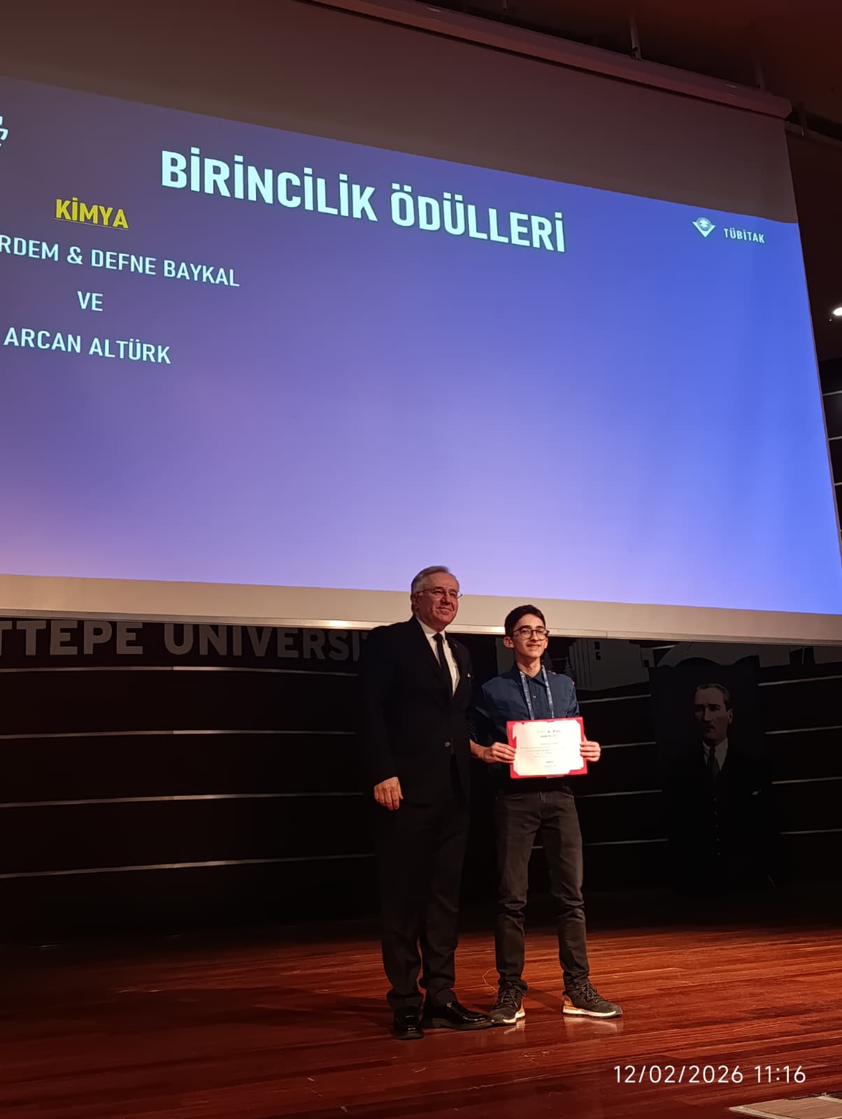 Bir diğer başarı da Kimya alanından geldi. Öğrenciler Ada Naz Taşkın ve Erva Kurtul, danışman öğretmen Gürol Keserci rehberliğinde hazırladıkları “Fotovoltaik Panel Destekli Elektrokoagülasyonun Tekstil Atıksuyundaki Etkinliği” isimli proje ile Ankara Bölge Üçüncüsü olma başarısı gösterdi.